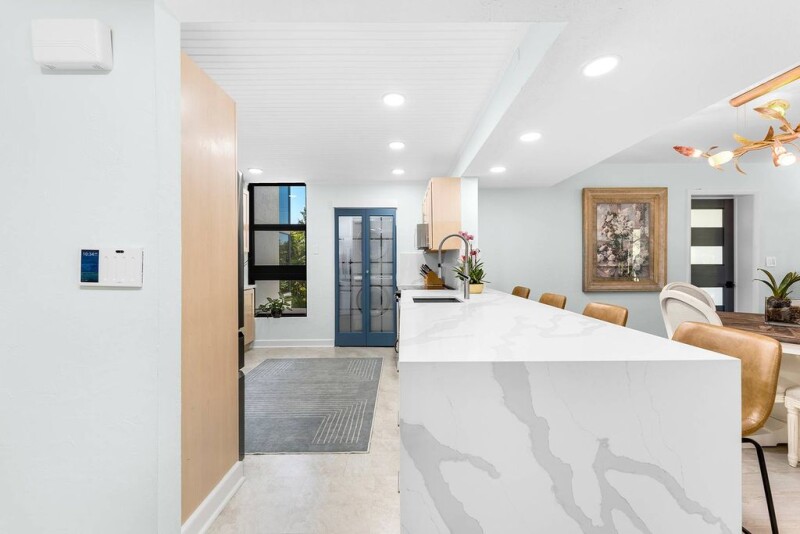 Be prepared to fall in love with Seawatch in Marathon. Featuring 48 units situated on 17 lush acres of manicured grounds, this community is ideal for those who enjoy seclusion and amenities galore. Recently completing Florida's required Milestone Inspection with Reserve Study almost finalized, relax at Unit 104 in Building 6 that features two bedrooms plus a bonus room (used as an office) and two updated bathrooms. Feel one with nature amidst views of the natural hammock and peek-a-boo views of the on-site marina. Step into the stunning Chef's kitchen featuring Carrera quartz countertops and backsplash with a modern, waterfall edged peninsula, white-oak cabinets, and all new appliances including two dishwasher drawers. Find updated ''ocean blue'' interior and closet doors with glass paneling. Open the new impact sliders to enjoy a true indoor-outdoor space and plant sanctuary amidst the 400 square foot screened-in porch. Master bathroom is complete with a marble topped double vanity and new glass shower enclosure. Custom shelving in the master closet too. Contemporary guest bathroom with custom tile flooring and walls, opaque glass and black hardware shower enclosure, glass sink, and Carrera quartz topped vanity. With an additional bonus room that would easily convert into a third bedroom, enjoy room for all. If that is not enough, stay active at the tennis & pickleball courts or workout at the on-site gym. Relax by the brand new million-dollar pool and spa. Store your vessel, boat trailer, or even golf cart in the storage barn with 35-foot tall ceilings. Grill out at the on-site pool cabana or host gatherings at the clubhouse. With all of these amenities, you'll never want to leave... but if you do, enjoy immediate access to the Gulf or Ocean through Vaca-Cut from the on-site marina (boat slips for rent). With the conveniences of Marathon's private airport, grocery stores, and restaurants nearby, this is the way to enjoy the finer things in the Florida Keys!.