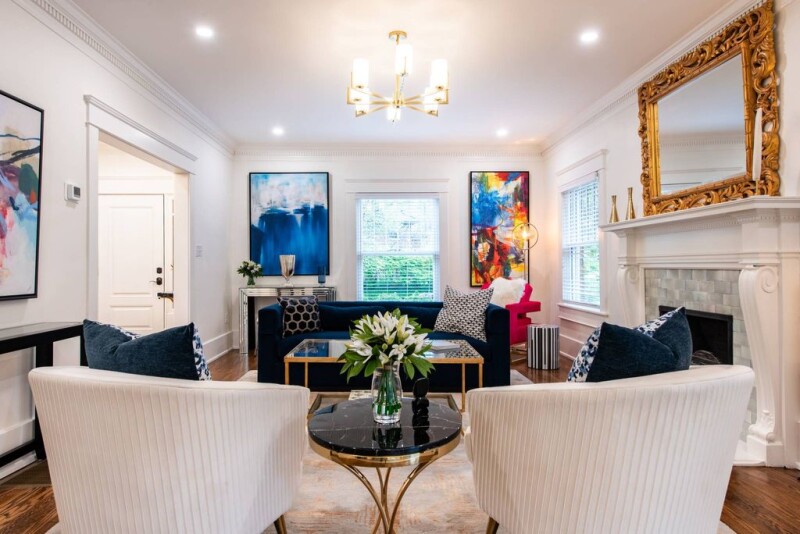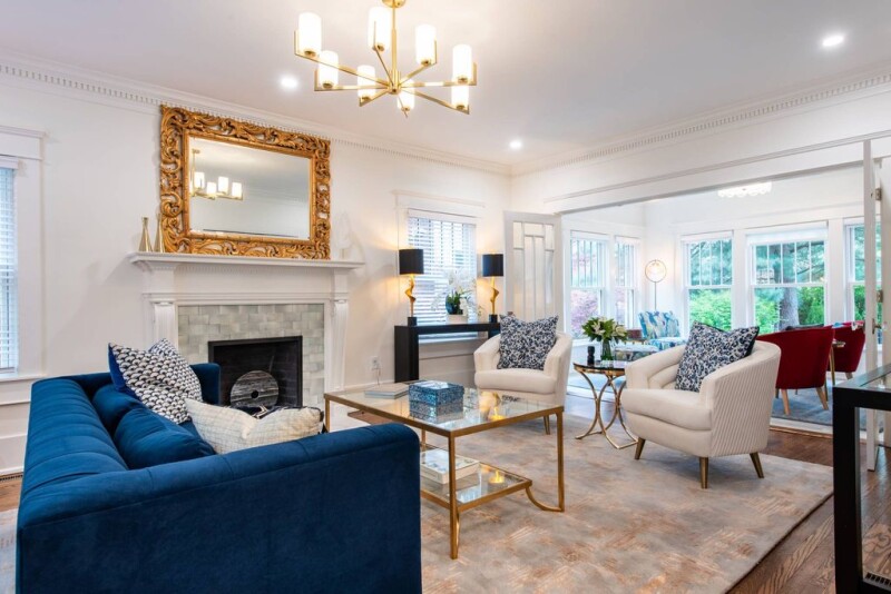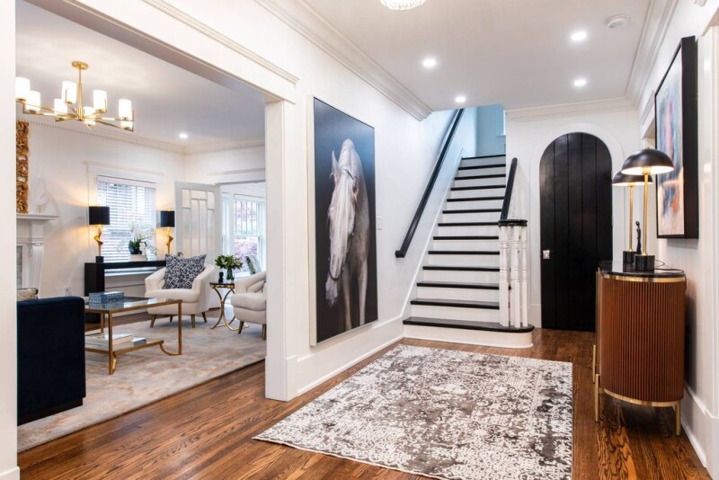 Introducing this beautifully renovated stately gem nestled among the majestic trees of Cherokee Park. This stunning three-story, four bedroom home located in the iconic Cherokee Triangle has been meticulously renovated combining original timeless and ornate architectural details with modern comfort and convenience. Prepare to be impressed with the thoughtful and detailed craftsmanship as you enter the charming front porch flanked by columns through the beautiful front door with restored leaded side lights into the gracious foyer. The open and spacious floor plan flows beautifully for family gatherings and entertaining. The striking dining room with crystal chandelier on one side opens to the all new kitchen which features a stunning island with Koehler enameled cast iron undermount sink, Brizo Bridge faucet and pendant light fixtures. The white cabinetry by Mike's Custom Woodworking is the focal point and features soft close drawers, custom overlay on GE Monogram refrigerator and timeless stone countertops. These details are also on the built-in wet bar located in the sunroom, which has a convenient wine cooler and is surrounded by tall windows for fabulous views of the picturesque backyard. Both areas feature beautiful new porcelain tile. The spacious living room is perfect spot for gathering and entertaining with a charming fireplace and another stylish chandelier. The first floor includes an all new convenient powder bath off the foyer. The striking custom turned staircase leads to the second floor which includes three bedrooms, two full baths and a laundry room, all completed by Mike's Custom Woodworking and accented by more porcelain tile and custom closets. The private primary suite is a spacious and serene oasis and boasts a beautiful crystal chandelier. There are two additional bedrooms and another full bath on the second floor. Ascend to the third floor retreat which is perfect for guest quarters or kids with a fourth bedroom, another all new en suite bath, a spacious multi function lounge area and another laundry room. The lower level has also been completely renovated and includes a cozy family room with French doors that walk out to the patio, deck and charming backyard. Additional updates include: *New landscaping and drainage surrounding the house. *New stairs and railings, sidewalks, pavers, Trex deck and retaining walls. *New front and rear entry doors, new French double doors at lower level. *New Sierra Pacific Energy Efficient double hung aluminum clad exterior windows throughout. *New exterior lighting, shutters and downspouts. *GE Monogram and Profile appliances including 2 washer & dryers from Fergusons *Two new Bryant high-efficiency furnaces including 3 ton & 4 ton HVAC units to serve all floors *Two new 50 gallon Lochnivar hot water heaters *New HDA Shade Sense blinds throughout and white roller shades all by Spindletop Drapes *Custom lighting and chandeliers throughout *Tile and custom bath shower enclosures by Meese Tile *All hardwood floors sanded and refinished.