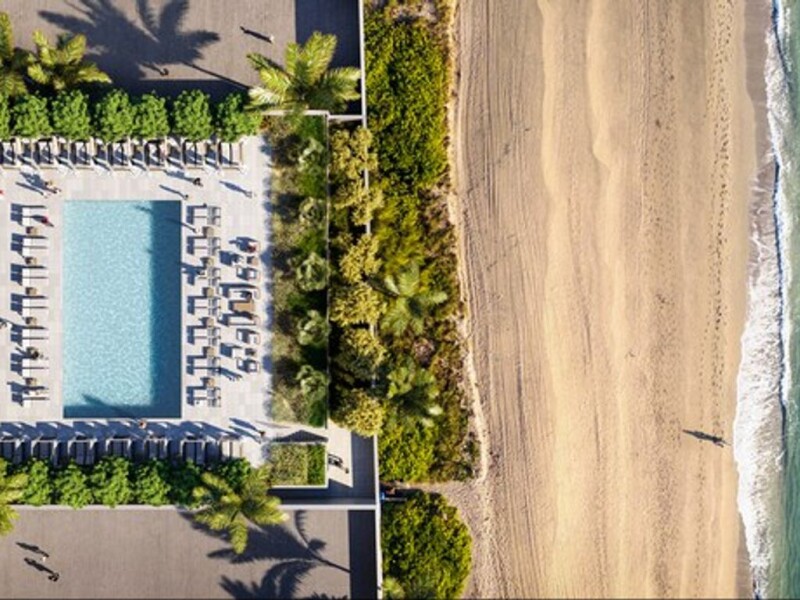 This luxurious duplex sky villa maintains a very strong connection to the surrounding landscape, as all interior and exterior spaces have direct views along a continuous horizon line. The 9,363 square foot space is encased in floor-to-ceiling glass windows, offering unobstructed views, and features a private pool deck with an outdoor kitchen and shower. Additionally, the continued use of timeless, natural materials is fashioned with luxurious elegance by Italian interior designers. Direct beach access with private beach amenities Landscaped sculpture garden Private arrival and valet entrance Services Full-service valet parking 24-hour security Concierge; 24-hour lobby attendant Amenities Two swimming pools with expansive sunrise and sunset views: — Elevated oceanfront pool overlooking the Atlantic Ocean — ‘Sunset Lounge’ pool with lounges, private cabanas and private outdoor dining overlooking the Intracoastal Waterway and surrounded by lush landscaping Pool Service Private beach amenities including cabanas, chaise lounges, beach umbrellas, and a fireplace Freestanding spa pavilion with treatment rooms, Hammam (steam bath), ice room, and yoga room nestled within the elevated landscape and opening onto the contemplative bamboo garden Curated gardens Tranquility garden with lemon trees Oceanfront curated art library with garden views Oceanside Cafe and Juice Bar Catering kitchen State-of-the-art fitness and wellness center overlooking the gardens Sunset Terrace — garden facing private function room Private function room facing the Atlantic Ocean Indoor theater and entertainment room.