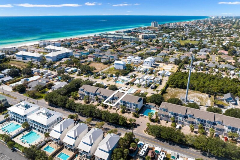Discover the perfect marriage of luxury, space and location at Driftwood 14, a stunning three-story townhome in Miramar Beach. Nestled in the sought-after Driftwood Drive community, this meticulously designed five-bedroom, four-bathroom retreat spans 2,610 square feet and comfortably accommodates up to 14 guests. Built in 2017, this elegant home is ideally situated just 700 feet from the beach and the iconic Pompano Joe’s, offering unparalleled access to Miramar Beach’s vibrant dining, shopping and entertainment scene. Step into a home that exudes quality and sophistication, featuring real oak hardwood floors, granite countertops, stainless Frigidaire Gallery appliances and crown molding throughout. The entrance level welcomes you with a serene king bedroom with patio access, a charming bunk room with four twin beds, a shared bath and a convenient laundry area. On the second level, an open-concept living area seamlessly connects to the gourmet kitchen, where granite counters, a spacious island and farm table seating await. The stylish living room, with ample seating and a 60-in. smart TV opens to a private balcony, perfect for enjoying coastal breezes. A queen bedroom with a Juliette balcony and shared bath complete this floor. The third level boasts a luxurious king master suite with a designer bathroom, oversized shower, soaking tub, and generous walk-in closet. An additional queen bedroom with a private bath and second laundry area provides ultimate convenience. With its two-car garage (including space for a golf cart), ample parking for up to four vehicles, and fiber cement board siding, this home is built for both comfort and durability. The community’s amenities include a sparkling pool with nearby bathrooms, adding to the allure of this exceptional property. Whether you’re seeking a primary residence, a second home or a lucrative vacation rental investment, Driftwood 14 offers unparalleled value. With proven rental income potential, low HOA dues and proximity to the sugar-white sands of the gulf, this home is an opportunity not to be missed.