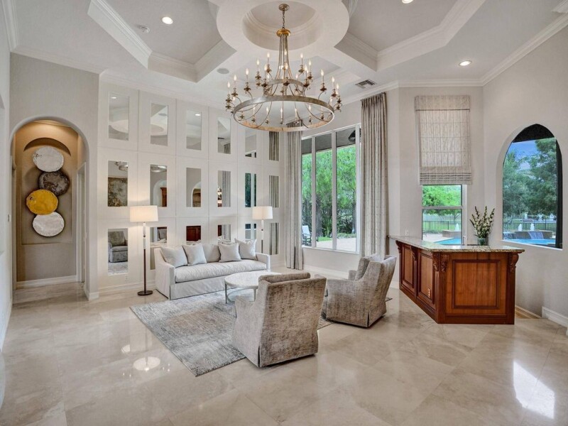 IMMACULATE home located in the prestigious, gated Blackhawk Reserve community, home to just 42 estates. This custom single-story residence, sits on a premium corner builder’s acre, boasts a voluminous tri-split open floor plan with 4 en-suite bedrooms, a dedicated office, & a lavish theater room (5th bedroom). Impeccable finishes include marble floors, impact windows & doors, chef’s kitchen with gas range, 42” refrigerator, granite countertops, Crestron automation & wired for whole house generator. Outdoors is a true oasis, featuring a pool & spa, summer kitchen, Viking grill, fire pit, lush landscaping, & lake views. Also included, motorized shades, Sonos system, dual driveways, 3-car garage, & a grand entry with a fountain. Residents enjoy private community tennis & pickleball courts.