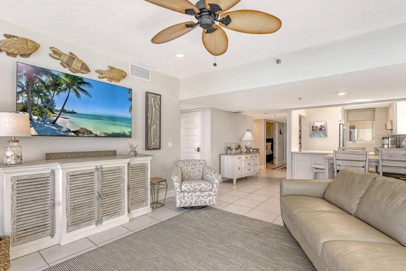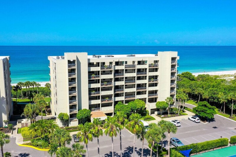 Elegance meets comfort in this rarely available, Gulf-front corner unit on Longboat Key's southern end. From the moment you step through the front door, you will be captivated by sun-filled, direct gulf-front views through floor-to-ceiling windows, providing an unparalleled, idyllic beachfront lifestyle. This beautifully renovated corner unit is thoughtfully designed for comfort and style and boasts a wraparound balcony perfect for entertaining and soaking in breathtaking views of the Gulf of Mexico with family and friends. Inside, every detail of this recently renovated unit has been carefully considered, including a kitchen that has been completely updated with new white cabinetry, quartz countertops, and glass tile backsplash with all new appliances and washer and dryer. The primary bedroom boasts floor-to-ceiling windows that offer a beachfront view, a door that leads to the balcony, and a luxurious primary bath that features dual sinks and new cabinetry and lighting. Additional features include hurricane impact-resistant windows, sliders and doors, recessed lighting in the living room and dining area, and remote-controlled Hunter Douglas window blinds that add a touch of elegance. Unit comes turnkey furnished. This unit features a premier parking space conveniently near the lobby door. Beachplace's, well-maintained gorgeous grounds with resort-style amenities include 24-hour manned security gate, private beach access with chairs and umbrellas, Wi-Fi, a heated Junior Olympic pool and spa, covered infant wading pool, multiple grilling areas by pool and large covered outdoor spaces, two lighted Har-Tru tennis courts with two pickleball courts, an EV charging location, multiple car wash stations, and a clubhouse with social rooms, organized social activities, two state-of-the-art fitness centers, saunas and a library.