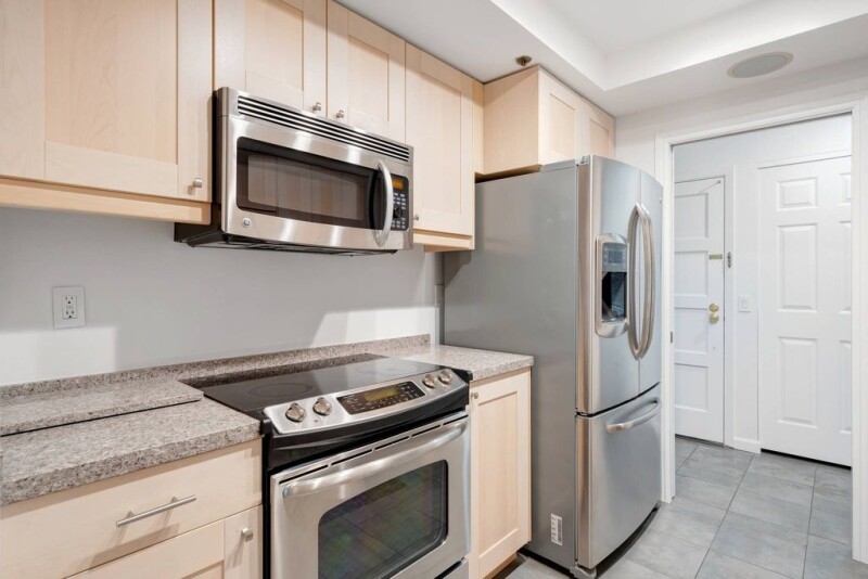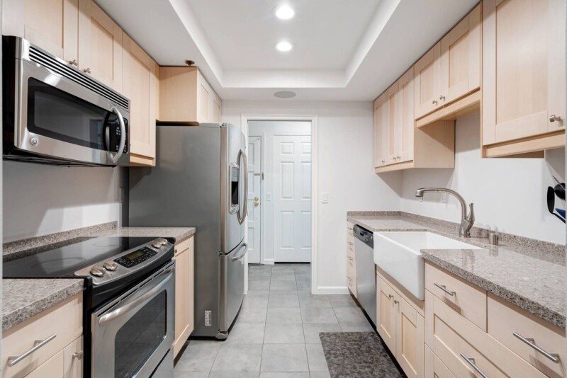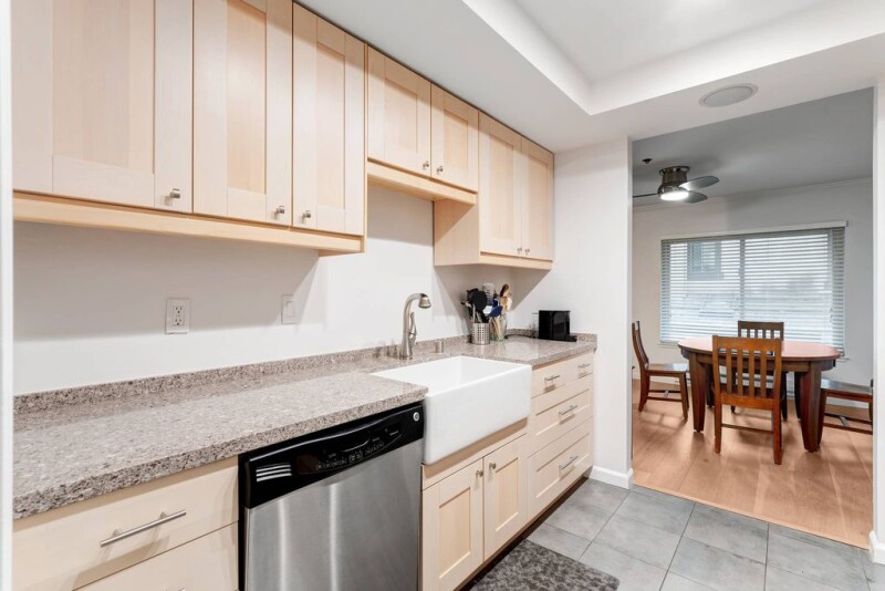 Enjoy stylish living at this rarely available building with only 9 condominiums just 3 short blocks from the Village. Top floor location and beautifully remodeled throughout with engineered wood or tile floors in every room. Large living/dining room combo with gas-log fireplace, private deck, wet bar, and wiring for surround sound. Remodeled kitchen with granite counters and stainless steel appliances. Lovely primary suite with customized wardrobe storage. Both bathrooms are luxuriously remodeled with contemporary designer style. Numerous smart home technology features for comfort and convenience. Concealed laundry, garage parking for 1, updated electrical can accommodate a backup generator. Wall unit air conditioning. Community pool. Great for starting out, moving up, or downsizing. Excellent Los Altos schools. **Please note that some of the property photos are virtually staged.**.