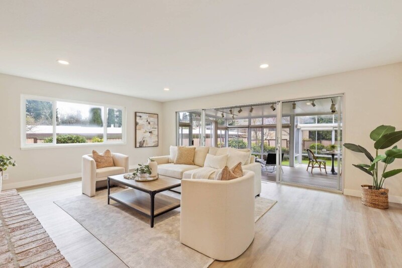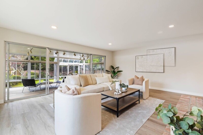 Nestled in a peaceful court, this beautifully updated single-story home blends modern comfort with timeless charm. Enjoy an open, light-filled floor plan with large windows overlooking lush gardens. The chef’s kitchen features new stainless steel appliances, a farmhouse sink with built-in accessories, quartz countertops, white cabinetry, and a spacious breakfast bar with seating for four. The adjacent dining area flows into a generous family room, perfect for entertaining. Extend your living space into the inviting sunroom, where you can enjoy your morning coffee or host guests while soaking in views of the beautiful backyard. This home offers generously sized bedrooms, including a luxurious primary suite overlooking the tranquil garden through a grand picture window. Complete with a built-in vanity, ample closet, and an ensuite with a spacious shower. Two additional bedrooms offer flexibility for guests or a home office. The updated hall bathroom includes quartz countertops and a dual vanity. Enjoy peaceful and private outdoor living in the front and backyard with mature landscaping, fruit trees, grassy areas, and a versatile side yard. With modern updates, a functional layout, and a prime location, this home is truly move-in ready!.