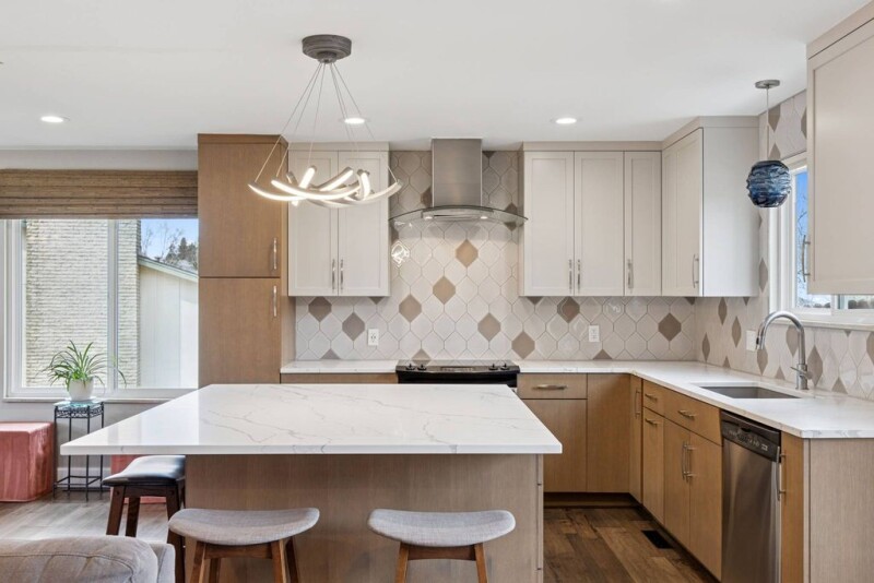 Nestled in a prime location near the Denver Tech Center, this stunningly updated ranch-style home offers the perfect blend of modern updates, thoughtful design, and incredible outdoor living. With easy access to I-25, Cherry Creek Schools, top-rated restaurants, grocery stores, and the High Line Canal trail system, the convenience of this home is unmatched. Ideal for family living, the main level features a spacious master suite, two additional bedrooms, and two beautifully renovated bathrooms. The light-filled, open floor plan flows effortlessly from the remodeled kitchen into the dining and living areas. Vaulted ceilings and expansive picture windows in the formal living room create a bright and airy atmosphere, while the cozy family room, anchored by a striking gas fireplace with custom metal shelving, adds warmth and character. The remodeled kitchen is a true showstopper, featuring quartz countertops, sleek cabinetry, stainless steel appliances, and a spacious sit-in island—perfect for cooking and entertaining. The fully finished basement, completed in 2023, provides an additional level of luxury with a media area, custom built-in entertainment center, luxury vinyl plank flooring, and a private bedroom with an ensuite bath. Thoughtful updates throughout include new doors, spacious closets with built-in storage, a new AC unit (installed in 2024, system fully serviced), and energy-efficient windows. Beyond its beautiful interior, this home is an outdoor oasis. The expansive backyard backs to a gulch and is surrounded by mature trees for ultimate privacy. Enjoy Colorado’s breathtaking evenings around the custom firepit or host summer gatherings on the spacious patios, complete with a gas line for your grill (grill included!). Additional features include EV charging capability (220V outlet), a new garage door, epoxy-coated garage floors, and a large laundry room with extra storage and a utility sink.