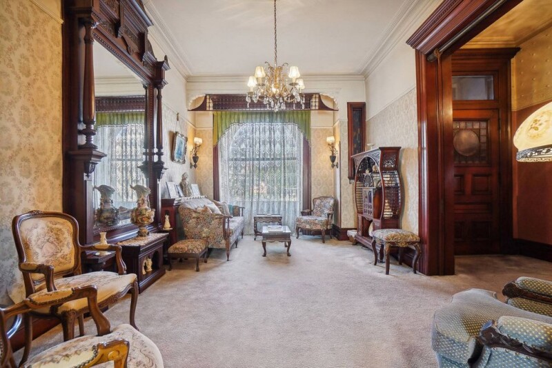 Discover a timeless gem in McGinley Square: a classic Victorian home built in 1885, nestled among historic brownstones. This architectural gem masterpiece i s located on a 19.8X100.1 Lot , exuding historic charm at every turn. Inside, you'll find exquisite details such as intricately carved marble fireplace mantels, 12-foot coffered ceilings, a grand staircase, and mahogany inlaid floors. Stained glass windows, pocket doors, and meticulous woodwork enhance the home's character. The living room features a grand mahogany pier mirror, with original moldings, medallions, wall sconces, and light fixtures adding to the elegance. The wooden window casings contribute to the home's sophisticated aura. Enjoy summer BBQs in the private fenced yard. This home is offered as-is, ready for you to make it your own.