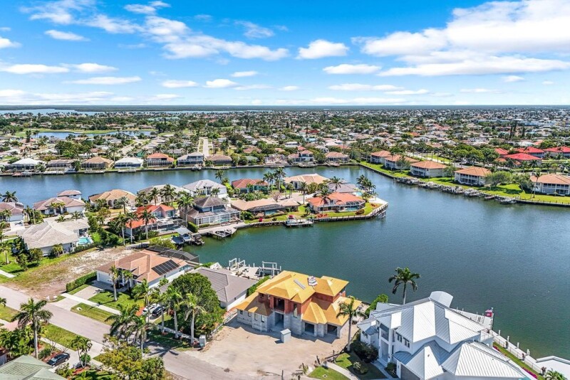 Immerse yourself in the epitome of coastal contemporary living with this exquisite 2-story custom-built home, offering 4 bedrooms, 4 baths, and a den. Nestled on a picturesque lot with stunning converging wide water views, this residence is a haven for the boating enthusiast, providing easy access to the Gulf of Mexico with the raised Smokehouse Bridge and situated on a tranquil cul-de-sac. A spacious open great room with soaring high ceilings, seamlessly blending into a gourmet kitchen. This culinary masterpiece features an island, breakfast bar, custom cabinetry, top-of-the-line Thermador appliances, a 6-burner gas range, and a separate dining area. The master suite retreat, located on the first floor, offers ultimate comfort and luxury. Additional guest bedrooms on the second floor include a loft, a wet bar, and a private balcony, providing perfect getaway for visitors. The expansive open lanai with a pool, spa, summer kitchen, sun deck, and gas fireplace are ideal for entertainment and relaxation, allowing you to indulge in the sparkling wide water views. This home is equipped with impact windows and doors, electric shutters for the covered lanai, roll-down screens, generator, propane tank, and a 3-car garage. A brand-new seawall was completed in April 2024, ensuring peace of mind and longevity. Conveniently located to all that Marco Island has to offer, this residence boasts an estimated completion date of November/December 2025, promising a modern, luxurious lifestyle in a great location.