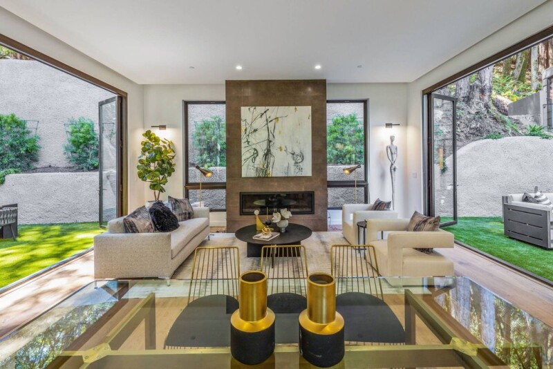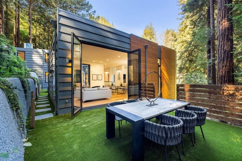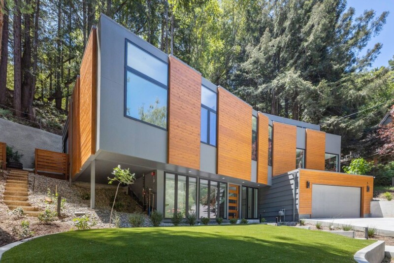 This ground-up new construction modern masterpiece designed by Richardson Pribuss Architects highlights everything there is to love about Mill Valley. Nestled in front of a magical uplit redwood grove and located around the corner from the coveted Scott Highlands playground and the Mill Valley Golf Course, find easy luxurious living behind the doors of 5 Tartan Road. Upon entering the home, be blown away by the modern glass railings and the lux wine storage display for all of your favorite vintages and bottle selections. You will find sleek French oak floors throughout and a wonderful curation of designer tile and fixtures. Boasting an open concept floor plan and large windows throughout, this single-family home checks all of the boxes. Great indoor-outdoor flow from the great room with two folding WeatherShield walls of glass. The beautiful accents of cedar siding against the cool grey exterior bring warmth to a fun and modern facade. The wide-open kitchen boasts a custom CopperSmith hood over a Miele range and Calacatta Laza countertops throughout. Custom Italian CLEAF cabinets bring contrast to the thoughtfully placed walnut accent walls. Ample walk-in pantry for convenience and bulk storage. Also on this level, find a guest bedroom with a bathroom ensuite and huge laundry room adorned with LG washer/dryer. The family room has beautiful built-ins, an under-the-counter beverage refrigerator and an ideal TV entertainment wall. Upstairs, the primary bedroom suite has a walk-in closet, oversized bathroom complete with standalone tub, double vanity, and shower, and private deck. Built-ins in the bedroom offer even more storage and organization. Down the hall, there are two additional guest bedrooms and a full bathroom. Beautiful home office nook perfect for working from home or powering through a homework session. Artificial lawn in both the front and back yard. Professionally landscaped and interior design by Salt Shed. Large two-car garage with an additional two-car driveway. Despite having a tremendous street presence, you'll be surprised by the amount of privacy this trophy home offers.