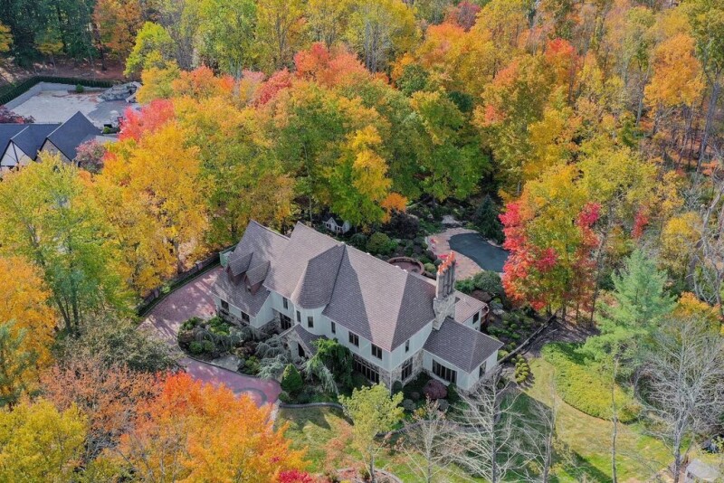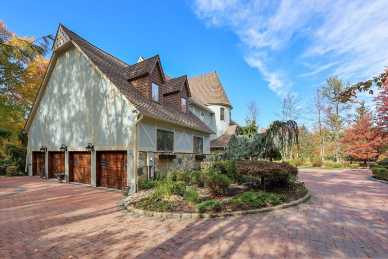 Make your fairy tale dreams a reality in this English countryside chateau that features tremendous craftsmanship throughout the interior and exterior of the home. Situated on a cul de sac in the hills of Warren, this estate offers elegant living with refined design and timeless architectural details. Bespoke wood trim and finishes are highlighted throughout the home and its thoughtful layout. Mature landscaping and a complete paver driveway give an impressive level of curb appeal. The breathtaking foyer is highlighted by a two story vaulted ceiling with majestic wood beams, custom mural painted walls, a sophisticated curved staircase, and a three level elevator. Endless entertaining opportunities await in the oversized sunken conservatory, with double French doors, that over looks the backyard oasis, elevated dining room with coffered ceilings, and a living room with a stately fireplace. The upper level is highlighted by a rare primary bedroom sanctuary that features two individual en suite bathrooms- one with an elevated jacuzzi tub overlooking the rear yard, four closets, and vaulted ceilings with exquisite wood beams. Host the ultimate pool party with an in ground pool that boasts a waterfall, and an expansive multilevel deck that wraps around the entirety of the rear façade. Meticulous landscaping and the wooded area provide loads of privacy. The fully finished lower level offers plenty of space for storage, recreation, hobbies, and a theater area.