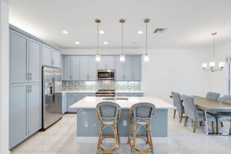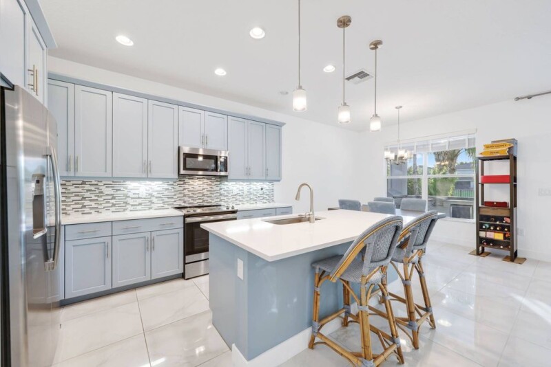 Welcome to this meticulously updated home featuring a resort-style backyard, perfect for entertaining. Enjoy the heated pool, full summer kitchen with multiple options for outdoor grilling, built-in/large wine refrigerator, and remote control motorized phantom screens on the oversized patio creating your private outdoor retreat and a seamless transition between indoors and outdoors. Direct western exposure ensures stunning sunset views over the pool and lake most every evening. Inside, every room has recently been professionally painted in a coastal color palette accentuating the abundant natural light. The great room offers elegant 24x24 white Verona Bianco tile and a custom built-in for style and functionality. The chef's kitchen is recently updated with sea blue cabinets, a decorative backsplash, stainless steel appliances, white quartz countertops, and a spacious island with pendant lighting. The master suite impresses with an oversized custom walk-in closet that will accommodate the largest wardrobes. The master bath includes upgraded cabinets, quartz countertops, floor-to-ceiling shower tile, and designer mirrors. Additional features include a 2nd floor loft and laundry room with sink, built-in storage, and new Samsung washer and dryer. Impact windows and doors throughout and a widened front entrance. This home is an entertainer's dream with both style and comfort!.