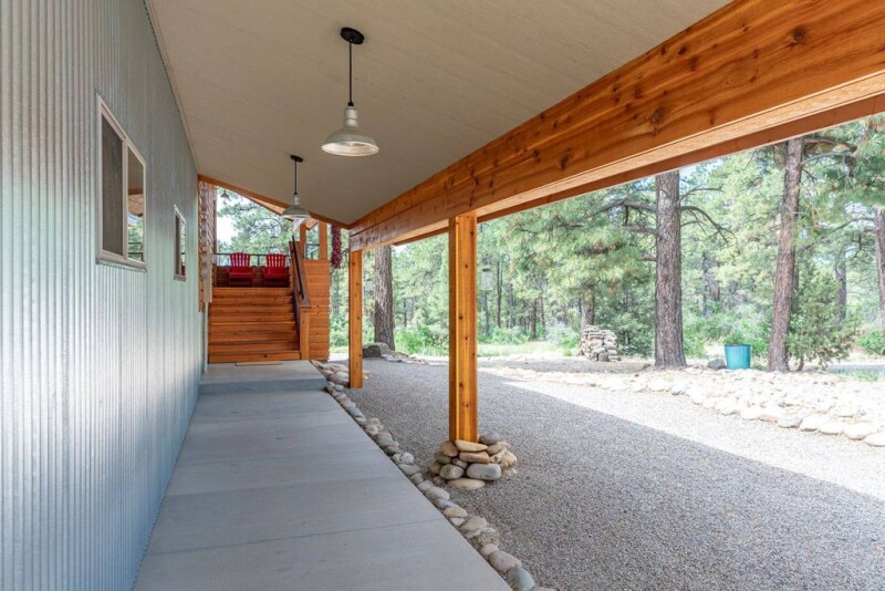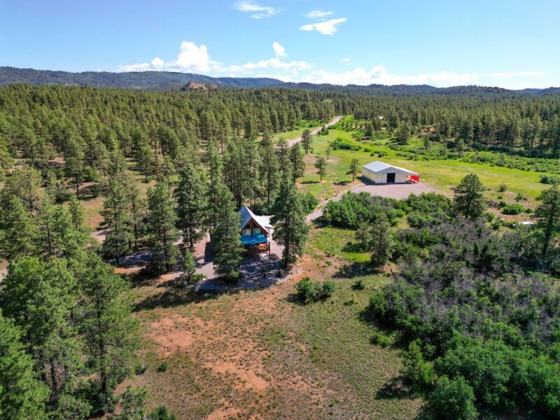 Situated amidst the serene Colorado landscape, this enchanting property encompasses 14.56 acres of breathtaking scenery, where ponderosa pines intermingle with vast meadows of dryland grass. Echoing the timeless allure of a classic chalet-style residence, this 2,000-square-foot retreat harmoniously combines rustic charm with contemporary comforts spread across three inviting levels. Upon entering, the great room impresses with its soaring 28-foot ceiling adorned with a grand fan, complemented by warm tongue and groove pine finishes throughout. The main living area features solid 1 1/4-inch-thick gunstock oak flooring, adding durability and elegance. The kitchen, designed for both functionality and aesthetics, boasts granite countertops and overlooks serene tree-lined vistas. Upstairs, loft windows frame stunning views of the meadow, ideal for spotting elk herds during their seasonal migrations. The loft is a versatile space, perfect as a third bedroom, guest space, home office, yoga studio, or library, with ample storage options. The lower level showcases a modern family/theater room with a durable sealed concrete floor wired for surround sound and equipped with a high-definition flat screen. The master suite offers a sanctuary with wall-to-wall hickory cabinets, a steam shower, double sinks, and Kohler fixtures. Outside, multiple relaxation areas beckon—a covered porch on the west side for enjoying summer breezes and a spacious south-facing deck offering peaceful views of the meadow, frequented by speckled fawns in the summer months. The property also features a well-appointed garage with LED lighting, auto doors, and amenities like hot and cold water bibs and 220V power outlets for versatile use. For the equestrian enthusiast or car aficionado, a Cleary building with a 70-year warranty provides five covered stalls and a spacious 42x60 enclosed area perfect for RVs or heavy equipment, with the potential for living quarters. Conveniently located just 10 miles from Durango and close to essential amenities, this property offers both seclusion and accessibility, with a well-maintained county road ensuring easy access for plow trucks and a double driveway featuring gated entrances for effortless trailer access. It boasts an excellent domestic well, efficient all-electric utilities, and a robust infrastructure designed for low maintenance and long-term durability. With no HOA restrictions, this retreat promises unparalleled privacy amidst nature's splendors. This property is a nature lover's dream, boasting wildflowers like lupines, bluebells, and wild irises that bloom throughout spring and summer, complemented by a seasonal creek. Wildlife enthusiasts will delight in frequent sightings of elk, majestic mule deer, owls, eagles, bobcats, bears, tanagers, grosbeaks, mountain bluebirds, and a variety of hummingbirds, among other species, throughout the year. Whether you seek a serene escape or an adventure-filled sanctuary, this property embodies the quintessential Colorado mountain lifestyle.