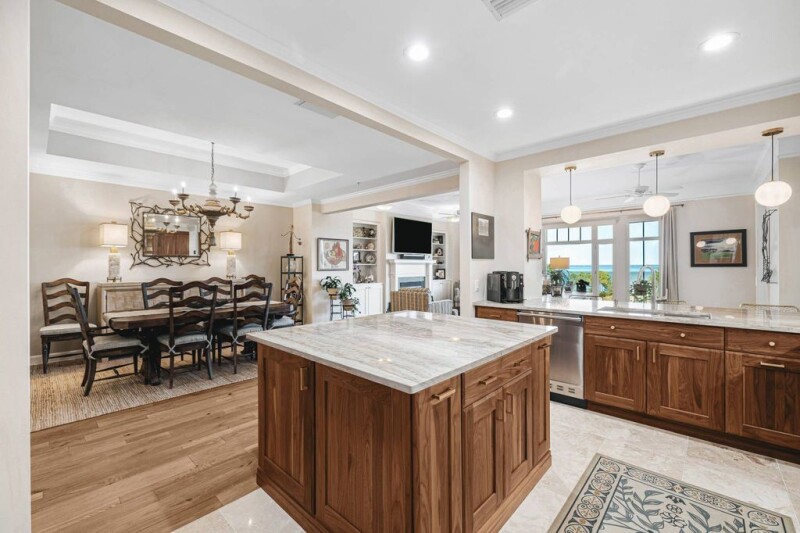 Elevated on the coveted fourth floor, this exquisitely renovated residence at One Water Place at Kelly Plantation offers breathtaking views of Choctawhatchee Bay and the Fred Couples Signature Golf Course, paired with unmatched convenience and accessibility. Designed for those who appreciate sophisticated living, this two-bedroom, two-and-a-half-bath home is a seamless fusion of elegance, functionality and modern luxury. Step inside from your private elevator vestibule to a bright, open floor plan adorned with gleaming white oak hardwood floors and custom crown moldings. The gourmet kitchen is a masterpiece, featuring custom solid walnut cabinetry with pullouts, exotic quartzite countertops and a striking recycled glass tile accent wall. A custom marble backsplash in the primary ensuite and tasteful neutral wallpaper in all bathrooms add layers of refinement. The expansive balcony is an entertainer’s dream, boasting a newly installed outdoor kitchen with a gas grill, refrigerator, custom cabinetry and a stunning stone countertop. Thoughtful upgrades continue throughout, including electric roller blinds in the living room and master bedroom, motion-activated LED lighting in closets, new Carrier HVAC systems, a towel warmer in the master bath and polished travertine floors. Designed for full-time or part-time living, this non-rental community offers world-class amenities, including a bi-level heated lap pool, spa treatment rooms, a 5,000-square-foot fitness center, a wine tasting room with private lockers, bocce ball courts, putting greens, a dog park, walking trails and an equestrian center. Two underground parking spaces and a private storage room provide added convenience. Completely move-in ready, this exceptional home delivers unparalleled value in one of the most sought-after communities along the Emerald Coast.