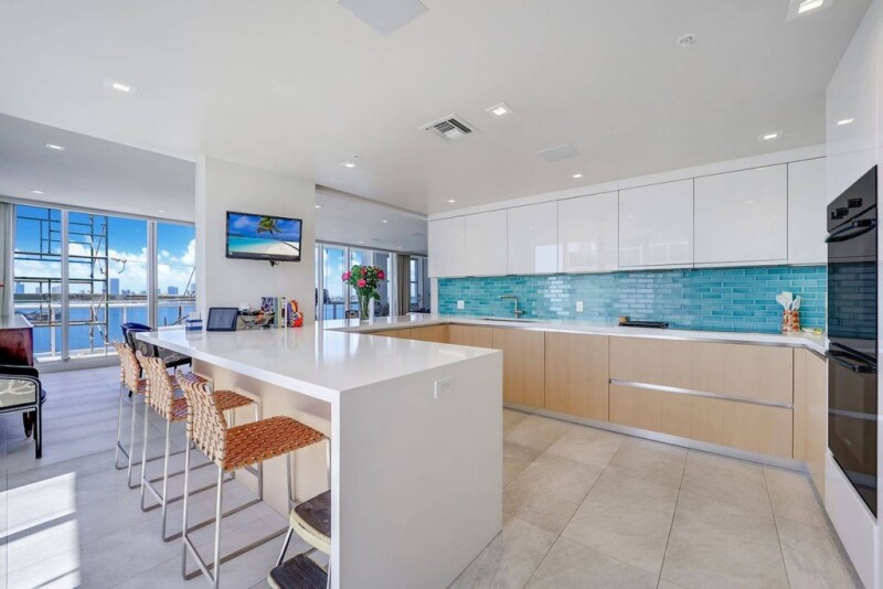 Rarely available penthouse residence in Sunset Harbour North Tower. This expansive 2BR/2.5BA redesigned corner unit offers 2,540 sq. ft. of luxurious living space completed with stunning Bay and skyline views. The gourmet eat-in kitchen features Sub-Zero, Bosch & Wolf appliances, double ovens, built-in grill, also with breathtaking Miami views. Additional highlights include 9-ft ceilings, spacious master suite, w/home office, roll-down shades, generous closets, 2-zone A/C, 2 parking spots, bonus storage, and a private sunset balcony. Full-service building with 24-hour security, concierge, and amenities. Steps from shops, restaurants, and recreation and minutes to Downtown. A true neighborhood. Option to reconvert the third bedroom. By appointment only, except Saturdays.