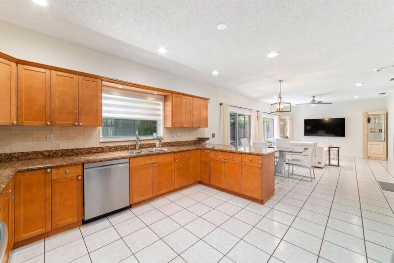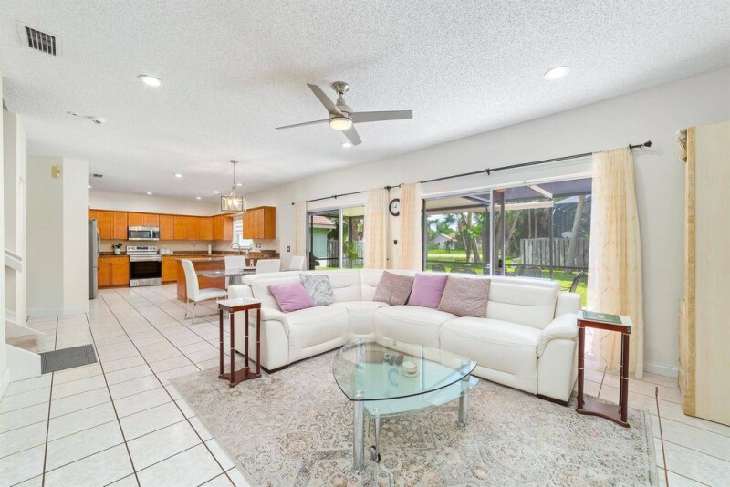 This great 4 bedroom, 2.5 bathroom, 2-car garage, LAKEFRONT home is resting on a 0.13 acre lot in a coveted Boca Chase community with LOW HOA in an A-rated school district. The home features all IMPACT WINDOWS (interior sliders are not impact). There is tile flooring on the ground level. The open concept kitchen is equipped with wood cabinets topped with moldings, granite countertops, stainless steel appliances (2022), and a pantry. The primary bedroom offers TWO walk-in closets and a closed-in sitting area / nursery. The primary bathroom has dual sinks, granite counter vanity, corner tub, shower with tile inserts and a bidet. One half bathroom is located downstairs for your guests' convenience. Step outside and relax on a screened-in patio facing the serene lake, in your backyard.