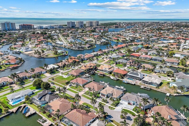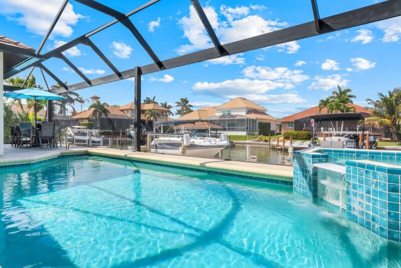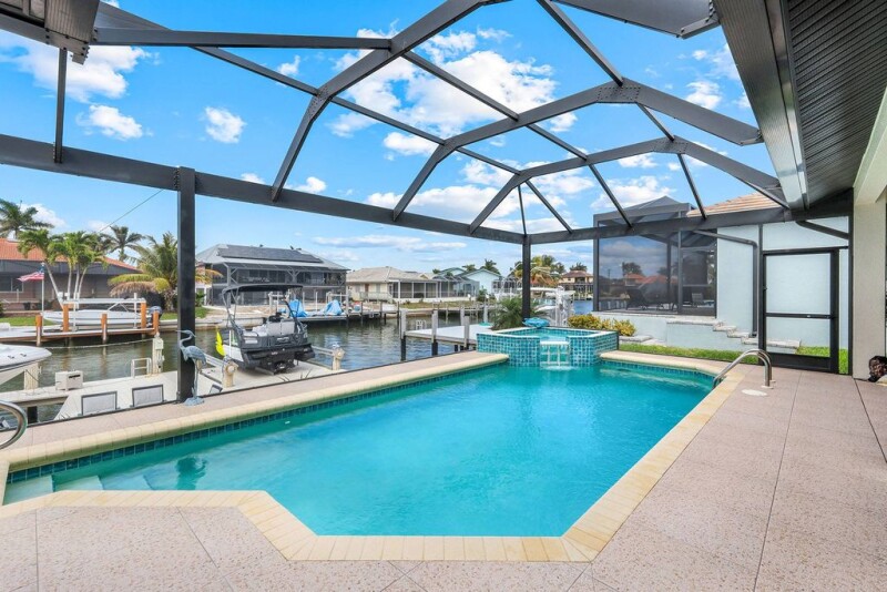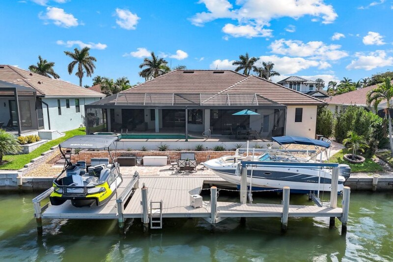 Proximity to the fabulous white sandy beaches of the gulf. This four-bedroom, two-bath home has been continuously updated with a new tile roof, new impact windows and sliders, 15-foot ceilings, 8-foot doors, crown molding, speakers in ceilings, high-end wood plantation shutters, a huge main bedroom, large guest bedrooms, formal living room, family room and dining room. The fourth bedroom is used as an office. Kitchen has newer stainless appliances, new quartz countertops, large 10-foot deep kitchen sink and a built-in lighted China cabinet. A large composite dock features a 7,500-pound boat lift and additional platform lift for jet skis, kayaks or paddleboards. The spacious backyard has a brick paver sitting area to relax in the sun or enjoy a fire pit at night. A newer Panoramic view screen enclosure surrounds the heated pool, spa, outdoor shower, a large sun tanning area and a large shaded lanai area all with cool river rock tile. The home has hurricane safeguards for peace of mind and lower insurance costs. The seller has a transferable NFIP flood insurance policy at a low rate.