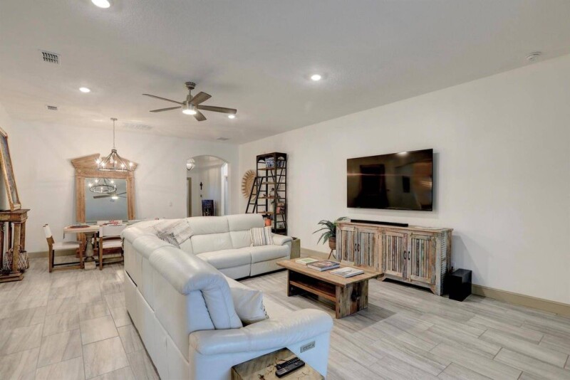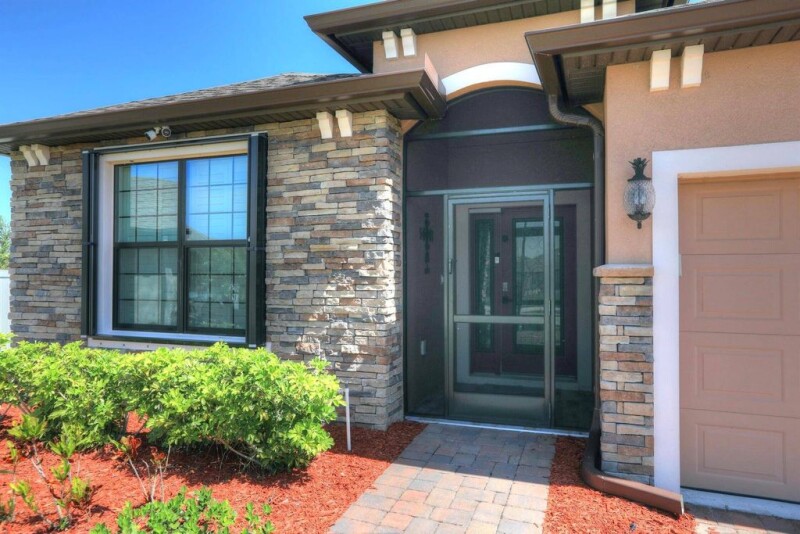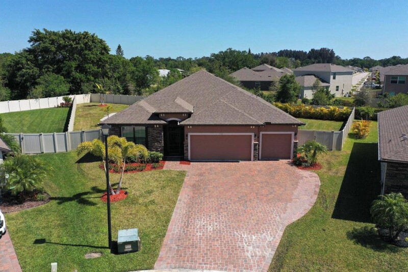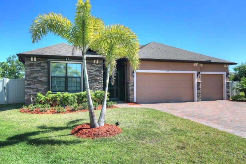 Gorgeous open floor plan 2020 built 3 bedroom, 3 bath pool home in the wonderful community of Orchard Park in Vero Beach! Upgrades include wood plank tile throughout, large gourmet eat-in chef's kitchen with new appliances and quartz countertops, plantation shutters throughout, spacious tiled patio with tongue and groove ceiling, electrically heated screened in pool with waterfall, extended pool deck, extended outdoor patio areas on both sides of pool, oversized vinyl fenced in backyard, 3 car garage and a large paver driveway all in a quiet community centrally located with low HOA fees!.