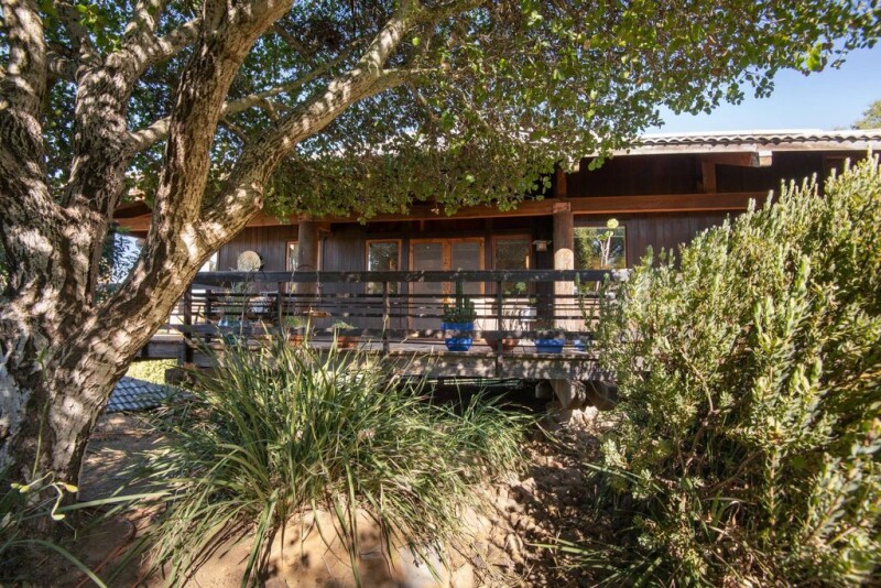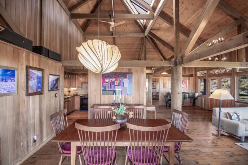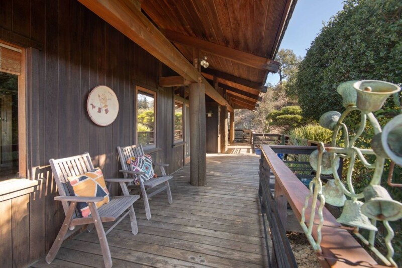 East meets West in the iconic Topanga Haiku House: where modern simplicity and exceptional design merge on nearly one acre of land with paths to make communing with Nature a daily ritual. Incredible Post and Beam construction with tile roof create Hawaiian vibes in an open, airy 4 bedroom floor plan with 20 foot ceilings, wrap around covered decks, and stunning views, including Eagle Rock and downtown LA on a clear day. Primary retreat has direct access to a private section of the deck with Redwood Hot Tub, the perfect place to enjoy your morning coffee while contemplating the day ahead. Kitchen, Dining, and Living room with commanding wood-burning Rock Fireplace that anchors the home all flow easily to provide warm, inviting places to gather with those you love. Redwood siding and interior, Cherry kitchen cabinetry and Distressed Hickory floors create multiple tones of wood throughout this well maintained home. Original vibrant tile bathrooms offer jewel toned accents to the neutral palette of this elegant country house. With Drought Tolerant and Native Landscaping, a Water Wise Irrigation System and Solar Panels, this home sits lightly on the land and is very low maintenance with electric bills offset significantly. Detached 2 car Garage provides ample room for storing tools and toys. Accessibilty ramp provides a stair free path from garage to house. Property is close to Saddle Peak, offering multiple options for ingress and egress. 10 minutes to town, 20 to PCH or Calabasas.