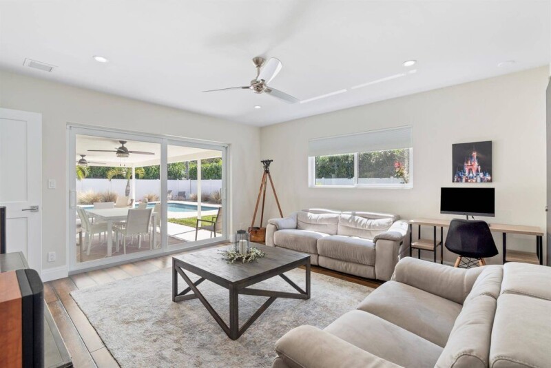 Welcome to this exquisite 4 bedroom, 4 1/2 bathroom single-family home, where each of the bedrooms is complemented by its own private ensuite. The heart of the home is the chef's kitchen, featuring a large island, built-in refrigerator, induction cooktop and a unique filtered, chilled water system right at the sink. The primary suite features a spa-like ensuite that includes a generous walk-in shower, separate soaking tub, and a walk-in closet with custom built-ins for maximum organization. A separate media room with sliders to the patio and additional storage completes this home, offering even more space to entertain or unwind. The expansive yard offers a sparkling pool, covered patio, and plenty of space for play. Have peace of mind with the energy efficient impact windows. Roof 2017.