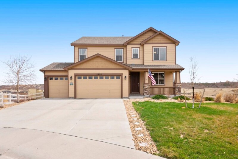 Welcome to 5998 Berry Ridge Way, a spectacular 5-bedroom, 4-bathroom traditional two-story home tucked away on a peaceful cul-de-sac in Castle Rock. Set on a .324-acre lot, this home offers privacy, space, and high-end finishes—perfect for today’s modern lifestyle. Enjoy Colorado living at its best with incredible outdoor entertainment space, including an elevated deck, walkout basement patio, dual gas stubs for grilling, and hard-wired heaters under the covered deck—ideal for year-round hosting. Inside, you'll find over 4,100 total sq ft (3,660 finished), with an open concept main floor featuring a massive kitchen island, abundant cabinetry, and stunning views from the dining room. Retreat to the luxurious primary suite with a spa-like bath and a custom walk-in closet. The finished walkout basement provides flexible bonus space, while the 40-amp EV charger and wide lot spacing with no direct rear neighbors offer next-level comfort and convenience. Located minutes from top schools, parks, trails, and shopping—this one has it all.