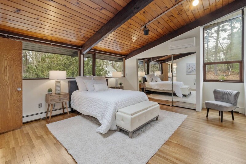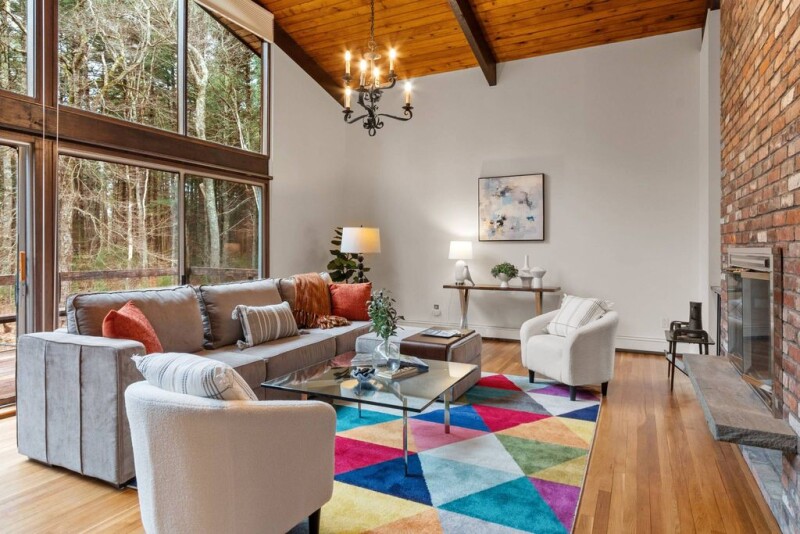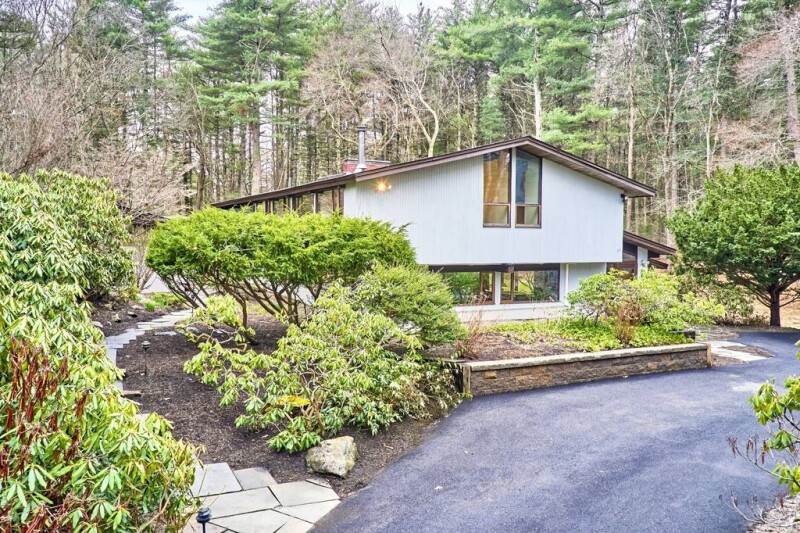Never before on the market! This custom Deck House built in 1964 in the coveted Stonehedge neighborhood was designed to harmonize with its natural surroundings. Featuring iconic mid-century modern elements—expansive glass walls, open floor plan, mahogany cabinetry, and exposed beams—this four/five bedroom, three bath residence is sited in a three-acre oasis abutting untold acreas of conservation land. The dramatic two-story living room is anchored by a floor-to-ceiling brick fireplace, while the kitchen with original mahogany cabinetry connects to the dining room and a sunroom addition (c. 1989). Multiple living areas -- a playroom with woodburning stove and an entertainment room (c.1999) -- offer flexible spaces for work or leisure. A detached two-car garage includes a one-bedroom apartment, workshop and kennel/stable area. Additional features: generator, stone patio, and mature landscaping. A retreat close to shopping and commuter routes which is both functional and timeless.