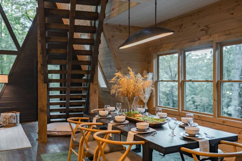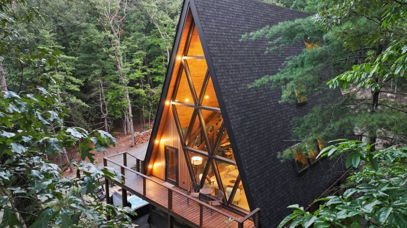 Introducing the Lux Lodge, a modern A-Frame built to impress. This striking retreat features five bedrooms, three bathrooms, and an open-concept living space anchored by a chef’s kitchen with high-end appliances. A built-in coffee and cocktail bar, seating for eight, and a large granite island make it perfect for hosting. Floor-to-ceiling windows flood the home with natural light and offer a treehouse-like vibe throughout. Outside, gather around the rock fire pit or take the party to the screened porch ideal for outdoor dining, movie nights, or games, rain or shine. Tucked behind a private gate and bordering protected USFS land, the property offers immediate access to hiking trails, creeks, and waterfalls. Lake Blue Ridge is just a 10 minutes walk, and the Toccoa River is a quick 3-mile trip for fishing or floating from Sandy Bottoms launch. The Lux Lodge is a thriving short-term rental, offering both a private escape and a turnkey investment opportunity. Sold fully furnished and thoughtfully designed throughout, this A-frame delivers a unique blend of modern comfort, privacy, and natural beauty. Dive into the mountain experience and make this one yours today.