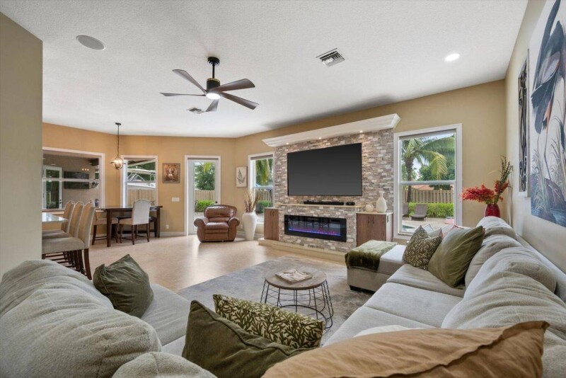This beautifully designed 6-bedroom home sits on a canal-front, oversized pie-shaped lot in Greenview Shores I--one of Wellington's sought-after non-HOA communities. The spacious master suite is on the main floor along with another bedroom/office, while an oversized upstairs bedroom boasts a large walk-in closet. The expansive kitchen flows into a huge family room and breakfast area, with a game room featuring a pool table and a formal dining room for gatherings. Enjoy a large fenced yard, covered patio, and heated pool. App-controlled sound, custom lighting, and thoughtful upgrades make this home perfect for entertaining. Bring your pets, boat, RV, or trailer--there's a separately fenced area! Walk to parks, restaurants, and more. Minutes from WEF & equestrian venues!.