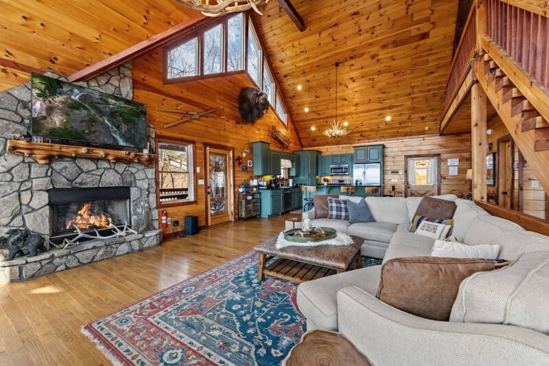 Discover lodge-style living in this stunning prow-front chalet overlooking some of the best views in North Georgia. With close proximity to some of the area’s best hiking and biking trails, the Toccoa River, and Lake Blue Ridge, this retreat is the perfect spot for the mountaineer at heart. Complete with three levels of living with outdoor spaces that rival the sprawling interior, soaring cathedral ceilings, warm wooden accents, stone fireplace, gourmet kitchen, slate showers, and stone countertops. The primary suite has a private balcony, in-suite fireplace and lush mountain views. The loft area has an additional bunk room or would make a perfect study. The terrace level is complete with a large den, game room and party porch with jacuzzi. Other special features include a brand-new roof and double carport, and the home is being sold fully furnished!.