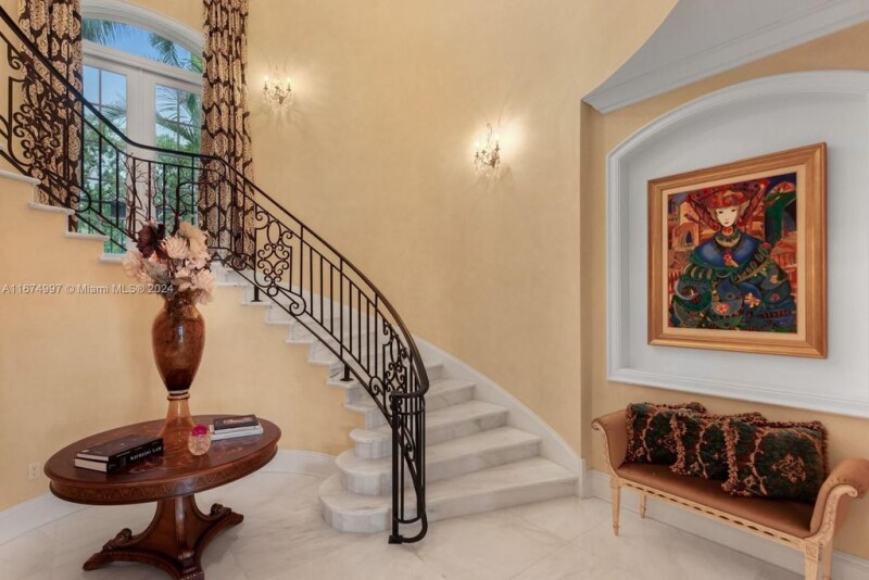 Discover unparalleled luxury in this magnificent residence, nestled in the ultra-exclusive gated community of Gables Estates. Boasting 225 FT of pristine water footage offering breathtaking open bay views. Expansive living spaces filled with natural light. The gourmet chef's kitchen features custom cabinetry & top of the line appliances. Custom-built Wine Cellar holding 2,700+ bottles in a temperature-controlled environment. Full house automatic generator, elevator, impact windows /doors , A/C 4 car garage & dock with boat lift. His/Hers offices, game/entertainment room as well as a fully equipped home gym. Spacious outdoor terraces, summer kitchen & bayfront pool. Situated in one of the most sought-after communities, this estate provides the utmost in privacy, security & luxury living.