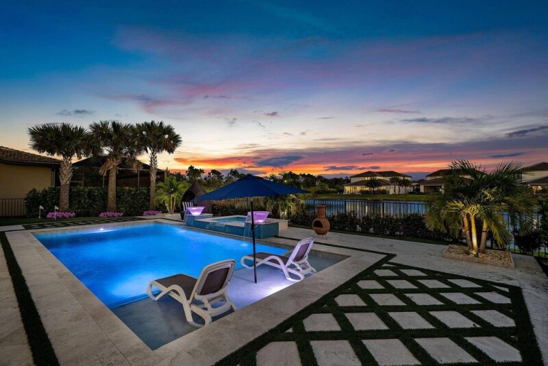 Luxurious Lakefront Living in Sonoma Isles Jupiter. Welcome to a breathtaking ''Garden Vista'' model home situated in the prestigious gated community of Sonoma Isles in Jupiter. This exquisite residence, built in 2021, offers 4,287 square feet of thoughtfully designed living space, featuring 5 bedrooms, 4.1 bathrooms, a private office, a spacious loft, and a stunning all-glass wine room--all nestled on a serene fountain lakefront lot. Step through the grand double-impact decorative glass entry doors into a home where modern elegance meets resort-inspired comfort. The soaring ceilings and custom designer spiral staircase, accentuated with wrought-iron railings, create a captivating first impression. The heart of the home is a chef's dream kitchen with upgraded and expansive quartz counterto.