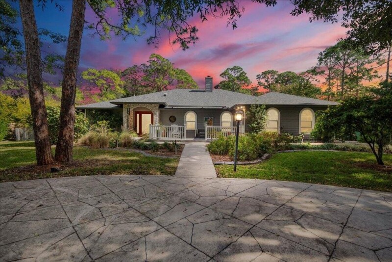 BEAUTIFULLY LANDSCAPED HIGH & DRY LOT , NATURE LOVER'S DREAM! 1.04 ACRE LOT, 2884 SF 4/3 SPLIT PLAN HOME INCLUDING GUEST EN SUITE/CABANA BATH ON PAVED CUL-DE-SAC STREET, CIRCULAR DRIVEWAY, 2 CAR GARAGE, FENCED & GATED, FIREPLACE, WHOLE HOUSE GENERATOR, ROOF 2023, POOL RESURFACED 2024, CENTRAL VACUUM, IMPACT WINDOWS, DOORS AND SHUTTERS THRUOUT AND LARGE SHED. From the moment you pull into the gated circular driveway, you'll be greeted by nature's beauty. Lush landscaping surrounds this property, creating privacy and a peaceful, country feeling. Watch the sunset from the front porch, the perfect place to relax and enjoy the sounds of the birds and scents of the flowers. Located on a quiet cul-de-sac paved street, this home offers plenty of space to entertain guests.
