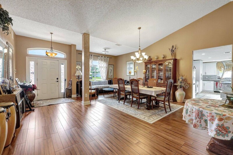 Exquisite 4 Bed, 3 full bath, 2 car garage home with over 3000 living sqft on an oversized corner lot. Features a huge 40' X 11' screened patio for large family and guests gatherings, a terrific floor plan with plenty of natural light throughout and quality upgrades galore. Interior comes with quality wood and tile floorings. Large new kitchen boasts an expensive set of appliances, 42'' cabinetry with crown moldings, granite countertops a huge pantry and a 90''x51'' island. Comfortable and spacious living, dining and family areas. Large master en-suite boasts separate shower and soaking tub. New hurricane impact windows, new lanai. The roof is 2 years old, newer AC and water heater. (LEASED) solar panel system - new owner to take on receive benefits of the drastically reduced electric bill.