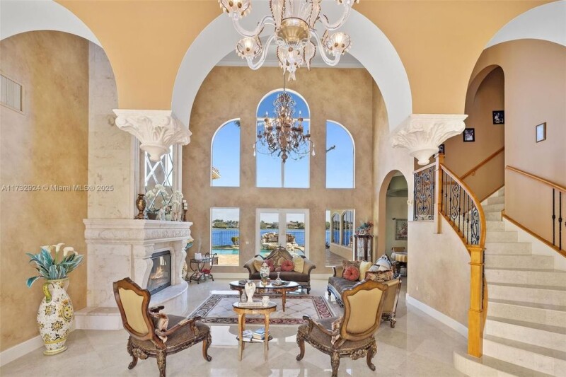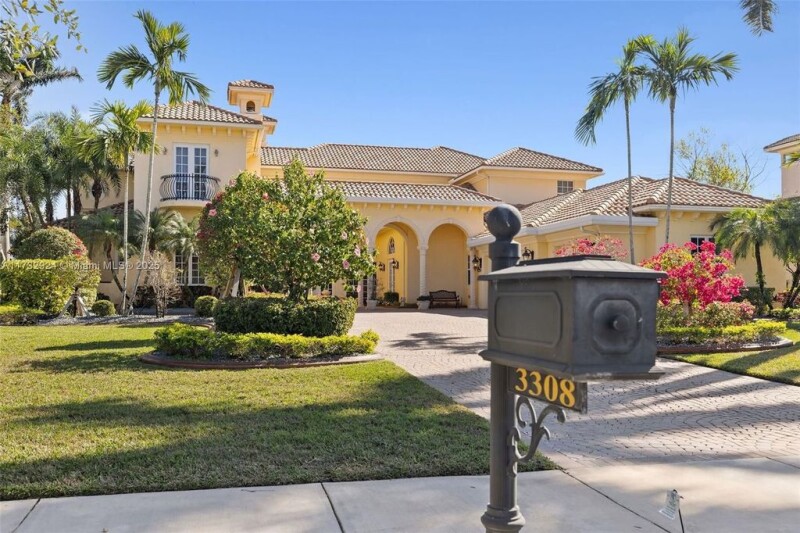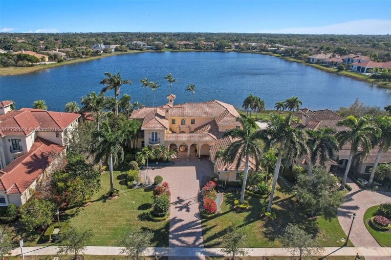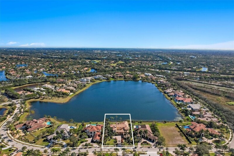 Casa Bella Vista is set on 125ft of long lake views in the prestigious 24/7 guard-gated Windmill Reserve. The estate offers a timeless design with an opportunity to personalize. The backyard oasis features a heated pool & spa, covered summer kitchen w/ motorized screens. Inside, find 6 ensuite BDs + office, home theater, billiards room w/ built-in bar, & a wine room. The 1st floor primary suite boasts a sitting area, wet bar, dual walk-in closets, spa-like bath w/ jacuzzi, walk-through shower & his & her toilet rooms. The well-appointed kitchen features Sub-Zero & KitchenAid appliances, gas cooktop, island & butler’s pantry. Additional features include a marble fireplace, courtyard entry with water feature, & elevator. A rare chance to own in one of Weston’s most sought-after communities.