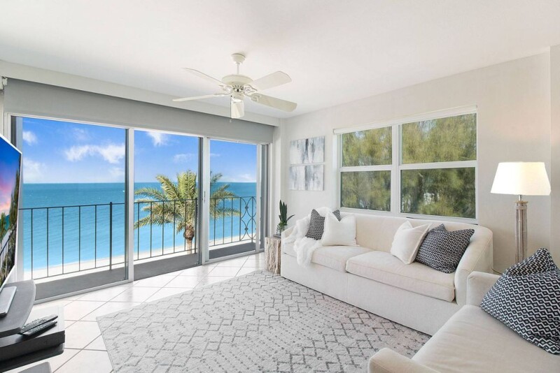 Enjoy life at the beach in Naples! This light and bright two-bedroom, two-bath end unit in Carriage Club is situated directly on the sandy white beach of the Gulf of Mexico, adjacent to Moorings Park. Revel in sunsets and windows offering three picturesque exposures- west for expansive water views, north for twinkling city lights at night, and east with glimpses of the Bay across Gulf Shore Boulevard. Offered turnkey, this unit is move-in ready, perfect for a weekend or seasonal getaway. The condo features impact windows, remodeled baths, new carpet, new stove and dishwasher, as well as a newer electrical panel. The slider boasts an electric storm shutter and a remote-controlled electric shade. Carriage Club is impeccably maintained, with renovated amenities and recently planted tropical landscaping adding to its allure. Amenities include a heated pool, assigned carport parking, extra storage, and a common laundry room. Additionally, Carriage Club provides an experienced on-site property manager and a secure lobby. Located south of Doctor's Pass, it's just minutes to Old Naples, the world-renowned shopping and dining on Fifth Avenue, and a short walk to Naples Pier.
