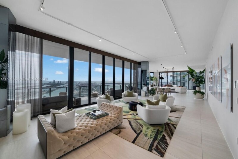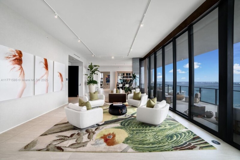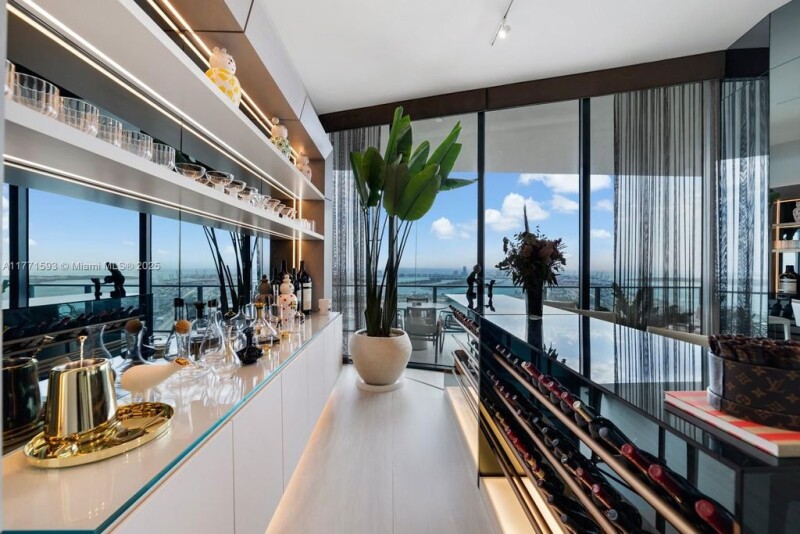 Penthouse Living Redefined in Miami’s Most Prestigious Building, a Zaha Hadid Masterpiece. Experience true penthouse living in this full-floor sky mansion on the 51st floor of One Thousand Museum. With 10,338 square feet of interior space and a 1,200 square foot balcony, this residence offers 360-degree views of Biscayne Bay, Downtown Miami, and the Atlantic Ocean. Features include 5 bedrooms, 6.5 bathrooms, staff quarters, 4-car parking, private movie theater, bar, his and hers closets, baths and sinks, large pantry and wine cellar, and double washer and dryer. Smart upgrades include integrated AV, lighting, motorized shades, and high-end finishes. One of only 10 full-floor residences, this $24 million home offers iconic architecture, unmatched privacy, and world-class amenities.