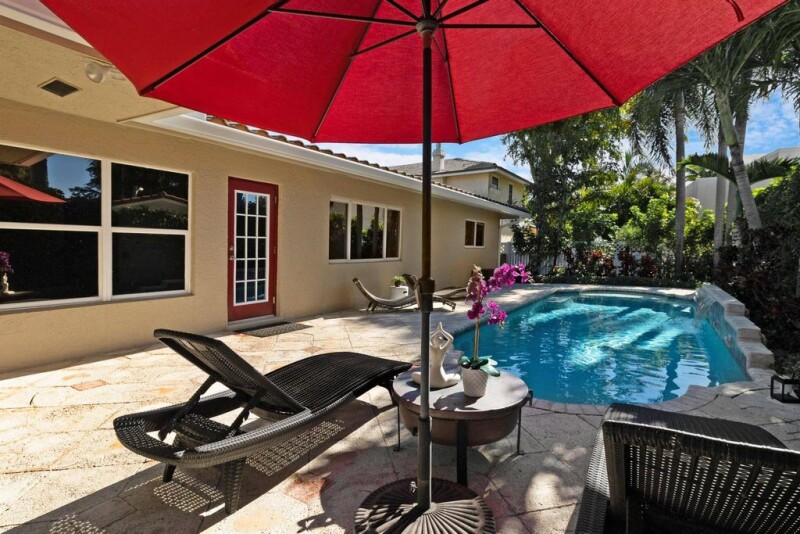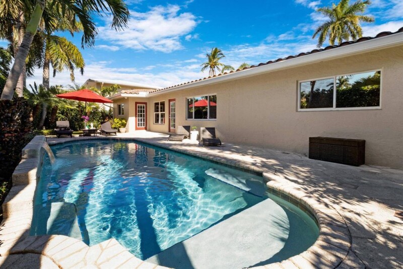 SELLERS WILL OFFER A CASH CREDIT AT CLOSING FOR IMPACT WINDOWS. Location, Location, Location...with all that Pompano is doing, this is the place to be! 4 bed, nearly 2200sft. This premier home is located EAST of FEDERAL; circle drive on a treed lot w/ pretty landscaping and a covered porch entry. No garage, No Problem! Storage abounds in every room with a plethora of CUSTOM CLOSETS! Crown molding, baseboard trim, high hats, and neutral color tile throughout. The 20x20 Great Room offers a peaceful setting w/light from both sides: a 3/4 wall of triple-front windows, back windows, and paned-glass door give a pool view. The OPEN CONCEPT allows convenient access to the kitchen: SS appliances, decorator faucet and high-top snack bar w/pendant lighting.