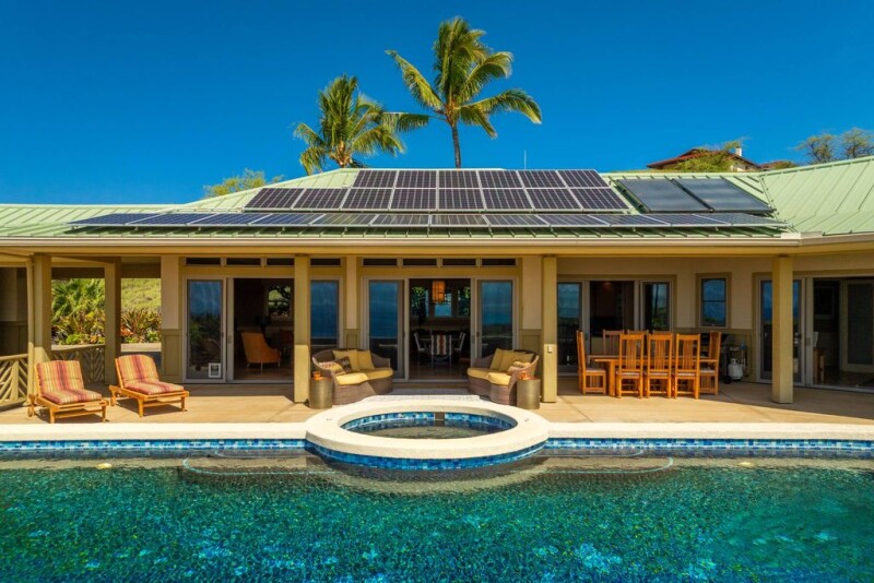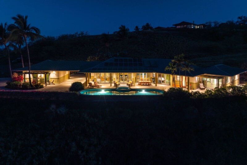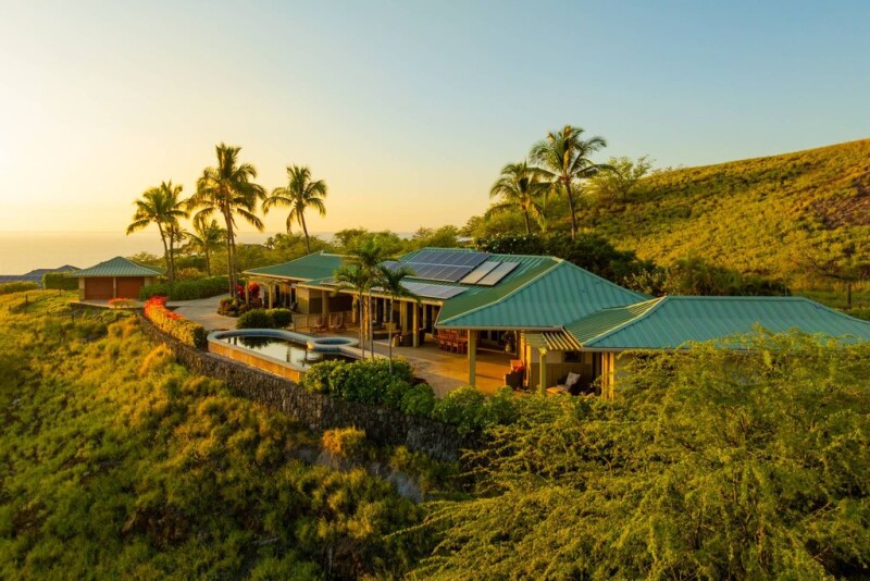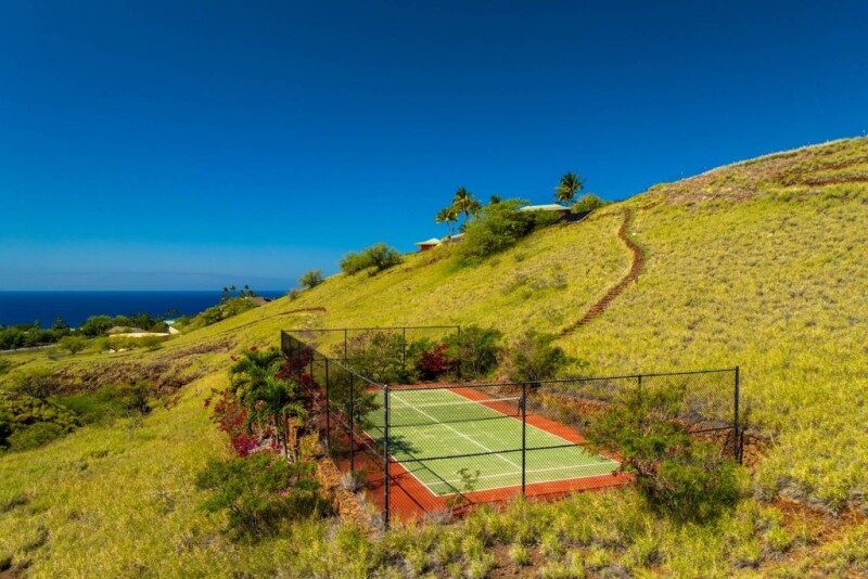 Perched in the exclusive Heather’s section of Kohala Ranch, this meticulously designed home offers unparalleled infinity-edge ocean views that stretch to the horizon. The residence has been expertly positioned to take full advantage of these breathtaking vistas, visible from both the expansive lanai and the interior living spaces. Set on 5 acres, the property is gated and includes a paddle ball court, fully fenced and landscaped, accessed by a scenic 150-foot path of hand-laid steps leading from the main house. The main residence boasts 2 bedrooms and 2.5 bathrooms, with Peruvian stone floors throughout, embodying both luxury and functionality. The charming separate 600 sq ft cottage is perfect for guests, featuring one bed/one bath and its own living area. In addition there is a large 2 car garage. With mesmerizing shades of blue surrounding the property—clear skies, the reflection of the swimming pool, and the infinite expanse of the Pacific Ocean—this home is the epitome of island living. The open-air floor plan seamlessly blends indoor and outdoor spaces, offering panoramic mountain and ocean views, along with unforgettable sunsets. At the heart of the home is the chef's kitchen, featuring custom maple cabinetry, commercial-grade stainless steel appliances. Designed for comfort and energy efficiency, the home includes a three-zone A/C system in the main house, additional A/C in the guest cottage, and solar hot water. The 47-foot lap pool, heated by solar panels, provides a serene space to relax and take in the surroundings. The 8-person spa, heated by propane, offers the perfect spot to unwind under the stars. This home offers quality construction that is hard to find. The spacious 3,000 square feet of living area, plus 1,108 square feet of lanai, is ideal for those looking for that indoor/outdoor living. Experience the ultimate in Hawaiian luxury and tranquility, in an unbeatable location.