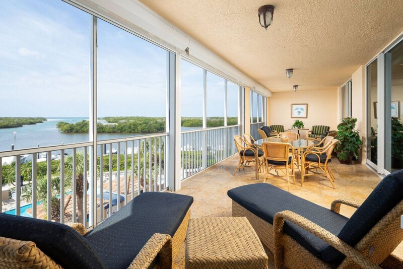 A luxury waterfront home with 80 feet of glass providing amazing views! This is waterfront living where you can touch and feel the water. The Flagship offers a flexible open floor plan, two en-suite guest bedrooms and a spacious owner suite with a private south-facing open balcony overlooking the navigable waters that lead out to the Gulf of Mexico, and in the distance, a neighboring yacht basin. The large lanai off the great room is ideal for entertaining and watching evening sunsets and the wildlife that surrounds the Island. Only a short distance away is a private award-winning social yacht club offering a beach shuttle, kayaks, fitness center, tennis, pickleball, bocce, fine dining, a modern state-of-the-art marina and more.