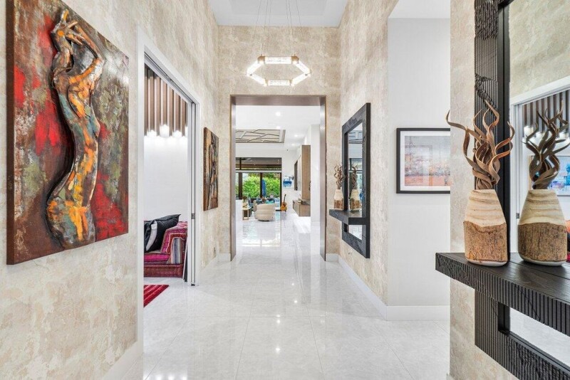 Introducing this exquisite contemporary Sevilla model, nestled within the prestigious Boca Bridges, where luxury living meets chic elegance. This trophy property offers a sleek, expansive design with nearly 3,300 square feet of meticulously crafted living space, showcasing an impressive level of detail throughout. The home features extensive millwork and designer wall coverings, adding a touch of warmth and sophistication to every room. The thoughtful layout and high-end finishes create an atmosphere of refined luxury and comfort, making this home a true standout. Featuring three spacious en-suite bedrooms, a stylish powder room, and a beautifully designed den/office, complete with custom built-ins, offering an elegant and functional space for work or relaxation. The open floor plan.
