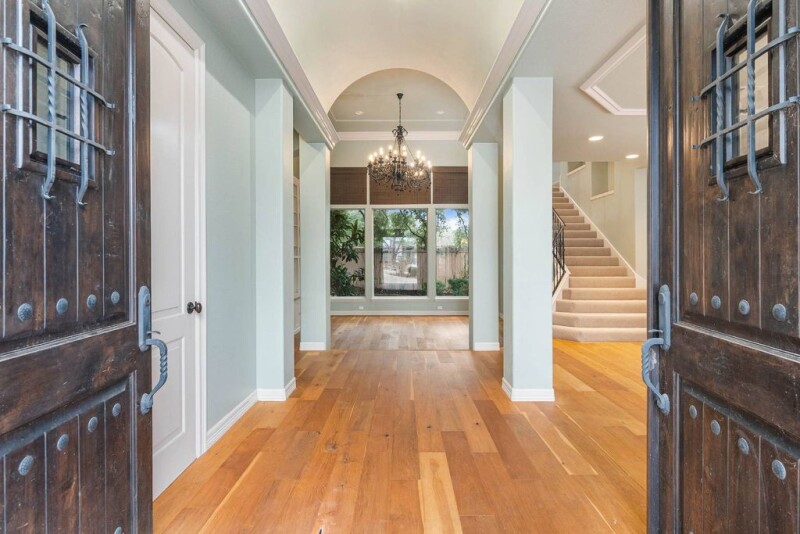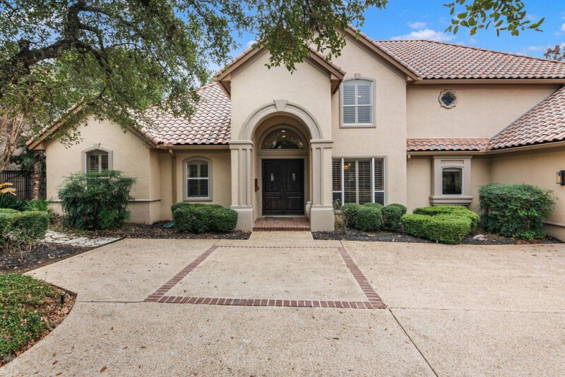 Tucked away in a private cul-de-sac, this stunning Mediterranean estate radiates elegance and sophistication at every turn. Thoughtfully designed with impeccable craftsmanship, the home features hand-scraped hardwood floors, custom ceiling treatments, and designer finishes throughout. Upgraded lighting, a chef's kitchen with granite countertops, solid wood cabinetry, and premium stainless steel appliances further elevate the space. Every room is generously sized, offering both comfort and style. A private guest suite on the main level includes an ensuite bath and a spacious walk-in closet, while the resort-style primary suite is a true retreat with a spa-like bath and an oversized, custom-designed closet. Step outside into your own private oasis, surrounded by mature oaks and lush landscaping. Flagstone decking, a built-in gas grill, and a tranquil water feature set the stage for effortless outdoor relaxation and entertaining. This exceptional home is a rare blend of luxury, privacy, and timeless beauty. Additionally, three HVAC systems have been replaced in recent years, enhancing the home's efficiency and comfort.