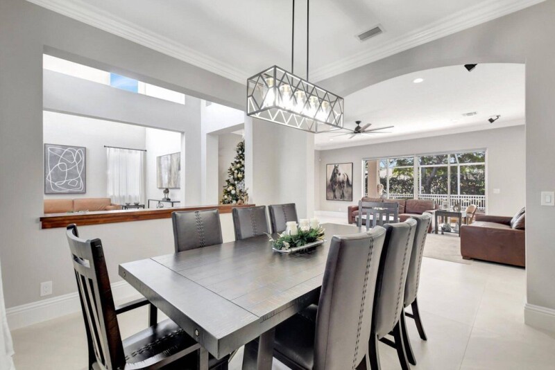 Fully Remodeled 5 bedroom 3.5 bathroom home in Isola Bella Estates! In like new, move in condition. All flooring is large format porcelain tile including full bathroom walls. Everything in this home was tastefully chosen and designed for full luxury living. All bathrooms are fully porcelain tiled and all showers feature handhelds and multiple body sprays. All new light fixtures and fans throughout. A brand new kitchen with quartz countertop and backsplash, and a fully enclosed outdoor area with grilling station and saltwater pool. Located on a canal front w/ no neighbors behind you. 2 NEW AC UNITS INSTALLED 9/2021. Home features 21 solar panels, solar hot water heater, accordion shutters throughout and flex space in the garage for entertainment. Full amenity clubhouse & 24hr manned gate.