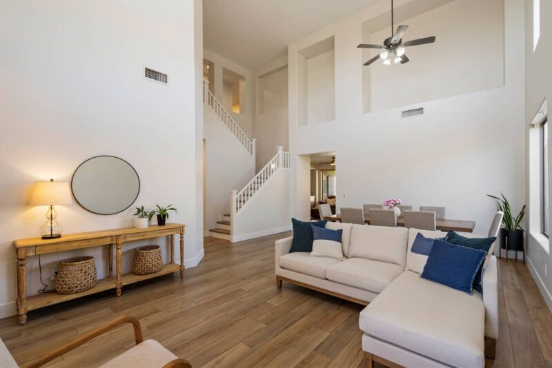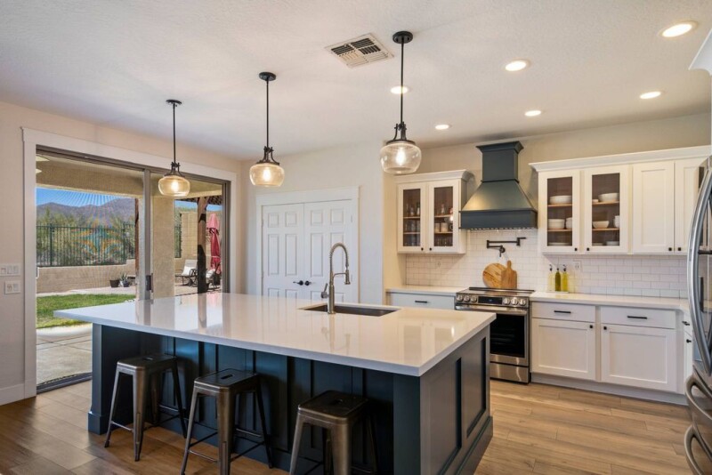 Look no further! This stunning 6-bedroom + game room, 3-bath home has been completely updated inside and out. Enjoy peace of mind with newer A/C units and a brand-new roof (2024). Gorgeous new kitchen, w/ oversized island & new cabinetry, All baths are updated w/Quartz Countertops & Toto Washlet Toilets. Fresh interior/exterior paint make this home move-in ready. Featuring luxury vinyl plank flooring throughout and custom wood entertainment cabinetry. The sought-after Victory floorplan includes a primary suite and guest suite with its own bath on the main level. Spacious backyard with no neighbors behind, a custom covered outdoor kitchen, and plenty of grass for play. A must-see! Amazing Community Pool, Gym, Tennis, Pickleball, Water Park, Playgrounds, Train & Parks throughout community.