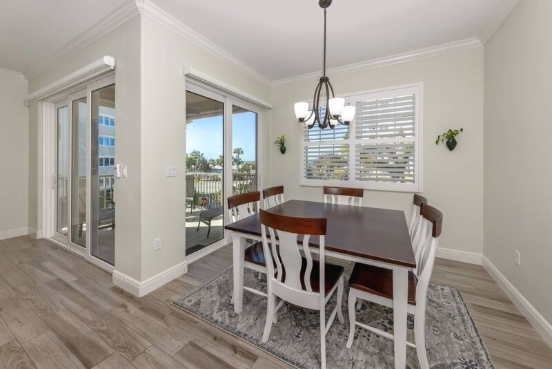Enjoy the Florida beach lifestyle at its finest in this unique, spacious corner unit property in the premier community of Che Vista. From your private balcony you will be treated to breathtaking beach views and magnificent Gulf of Mexico sunsets. Upon entering, you will fall in love with the abundance of light that fills the open great room, kitchen and dining floorplan. This spacious unit offers flexible living spaces. In addition to two bedrooms and two baths there are two additional rooms. The additional rooms provide ample space for comfort, sleeping and flexibility to suit your own personal needs, one of which is equipped with a Murphy bed. This condominium has many wonderful features and upgrades including high-end touches such as crown molding, deep baseboards, wood-like tile, gorgeous countertops, custom shelving in kitchen with pullout shelves, a Murphy bed, electric blinds on sliders, two primary custom walk-in closets, guest custom closet, custom utility closet, retractable screen on front door, shutters throughout, blackout shades in bedrooms, niches to display art, and a two-car garage with an epoxy floor with custom cabinetry. Che Vista is one of the newer developments on Venice Island across from accessible beach access, ideal for beach walks. It offers a large private community pool for soaking and socializing. This beautiful gem will provide an ideal Florida lifestyle! It is a short bike ride to downtown Venice, arts, culture, fine dining and shopping. Don't let this opportunity slip away. Schedule your private showing today.