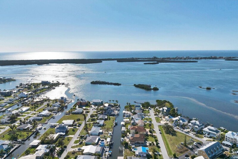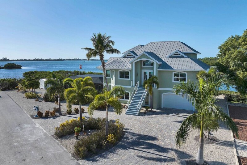 Surrender to the allure of magical sunsets from all levels of this gorgeous tropical escape. You will feel like you are on vacation every day of the year in this spectacular bayfront estate located on the most desirable point lot with over 2.77 acres of land and water to satisfy all aspects of daily life and entertaining. The home was significantly renovated in 2020 to the highest standards, with all PGT impact windows and doors to give peace of mind, full smart home system, three stop elevator to access all floors along with mindful updates. Upon entering the home on the main level into the two-story foyer, you are immediately captivated by dramatic 180 degree views of Lemon Bay from every room in the home. The kitchen is a chef's dream with a large quartzite island, beverage cooler, gas range with pot filler above and an abundance of cabinets to house a multitude of dinnerware for all occasions. This home is perfect for those desiring privacy for all of their guests with four bedrooms, all ensuite and each with incredible views, three full bathrooms, one half bath and an oversized open space on the lower level, previously used as an exercise space and pool cabana. To add to the already rich amenities of this home, the lanai adjacent to the saltwater pool and spa is the perfect resting spot after a long day on the water or to dine al fresco taking in the drastic waterscapes. With no bridges to the gulf via Stump Pass just a short distance away, this home is a BOATER'S DREAM. Multiple exterior decks and spiral staircase add drama and functionality for access to the multiple levels of this home. A new paver driveway was just installed to enhance the already impressive elevation of this home. So many upgrades, too many to mention here. Schedule your private showing today to discover all this home has to offer. Hurricane damage sustained to pool, cage, elevator and first level of home including the dock. Home being sold As-Is. Upper two levels had no apparent damage. Buyer to verify. New price creates incredible opportunity for this gorgeous waterfront home.