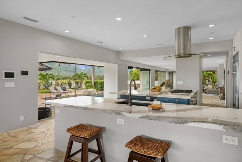 An exceptional trophy property, located on the 18th hole of the Puakea Golf Course, is a home like no other anywhere on Kaua’i. The awe-inspiring panoramic views of the Haupu Mountain Range (also known as the “Hidden Gem of Kaua’i”) are stunning. Home is designed for absolutely the best of indoor/outdoor island living in an extremely private setting. Designed by well-known Gary Tobey, this is the most distinguished luxury home on the Puakea Course. Perfectly situated on the largest and most secluded parcel in Puako, the residence is sited to take advantage of the views of mountains and golf course. Quartzite flagstone carries throughout. From the driveway to the elegant entry, the pool hardscape, and the complete living areas give this home the rich character to enhance any décor and indoor-outdoor Kaua’i style living and aesthetic. Built by J M Pacific, the home was constructed without bearing walls to support the unique roof structure; many of the more significant walls were engineered with steel framing. Extensive use of glass windows, doors, and walls creates expansive openness in every direction. Owners will not only appreciate but cherish the artistic attention to detail for generations – it is timeless with several hundred thousand dollars having been invested in new glass folding door systems, two new 5-ton Lennox variable speed high-efficiency air conditioning systems with air purification and Mylar air distribution system, two new Daiken mini split units, new insulation in the entire attic, new pool heater, new variable pool pump, new Pentair pool control system. New Savant audio video system, new televisions and speakers. The kitchen and bathrooms have new quartz countertops. New exterior paint. Hydrazzo polished pool finish, spa An amazing property that must be experienced to fully appreciate resort style living.