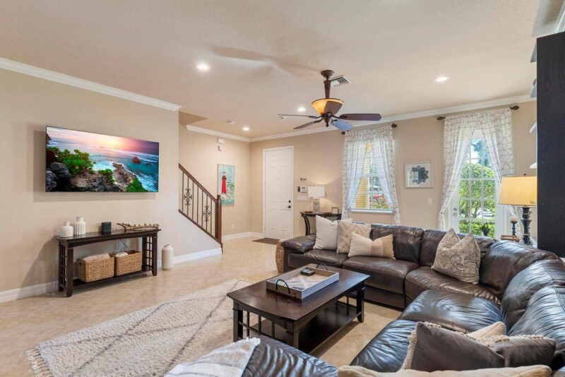 Beautiful one owner townhome shows pride of owners. All tile flooring on the main level and carpet upstairs. Rich wood cabinets in kitchen, granite countertops, dining area in huge great room, half bath and laundry on main level. Loft area upstairs along with three bedrooms and two baths. Inviting pavered patio off the kitchen connects with a two car garage. Community amenities include a fitness center and pool right across the street. Conveniently located near Abacoa, Roger Dean Stadium, wonderful restaurants and a short distance to beautiful Juno and Jupiter Beaches.
