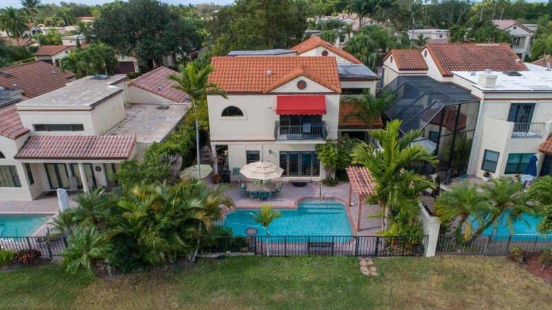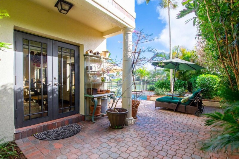 Meticulously maintained Mediterranean Villa in exclusive Boca Pointe, offering unparalleled privacy and stunning lake views. Nestled within lush, mature tropical landscaping, this estate features a large patio, private pool, cabana bath, and outdoor shower. Inside, exotic dark bamboo floors and high-end finishes complement the designer kitchen with granite countertops, stainless steel appliances, and ample storage, including a cedar closet. Recent upgrades include impact windows, doors, and garage, newer A/C units, roof (pressure cleaned 2024) and awning, as well as a legal hook-up for a portable generator. Optional club membership available. A truly immaculate home on one of the best lots in this prestigious community!.