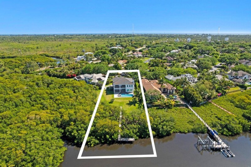 Welcome to this stunning New Construction 2022 masterpiece nestled on the picturesque Loxahatchee River with access to the intracoastal and ocean in the heart of Jupiter, Florida. This extraordinary CBS concrete block home is a rare gem that combines luxury, privacy, and impeccable design. Set on an expansive half-acre lot with lush landscape and stunning mangroves, this property offers complete seclusion in a serene and tranquil setting.As you enter this gorgeous home, you're immediately greeted by abundant natural light pouring in from every direction, highlighting the meticulous craftsmanship and attention to detail throughout. The open-concept floor plan boasts 5 spacious bedrooms, 4.5 luxurious bathrooms, and just under 3,500 square feet of living space.