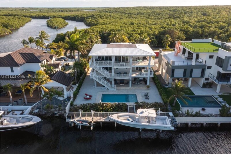 This three-story waterfront retreat offers the Keys lifestyle you've been dreaming of, with 70 feet of prime dockage and dual boat lifts (20K&10K) Five generous bedrooms feature walk-out balconies through impact sliding glass doors, treating you to panoramic views of both the Atlantic Ocean and North Sound Creek. The 360-degree perspectives remind you that water truly is way of life here. Luxury meets convenience with thoughtful amenities including: An elevator serving all three floors, refreshing pool and hot tub, 70ft of protected dockage, dual boat lifts, Impact windows, 4.5 well-appointed bathrooms. Positioned just off the Stretch in Key Largo. This isn't just a home- it's your gateway to the Florida Keys lifestyle, where every day feels like a vacation and the ocean is always calling.
