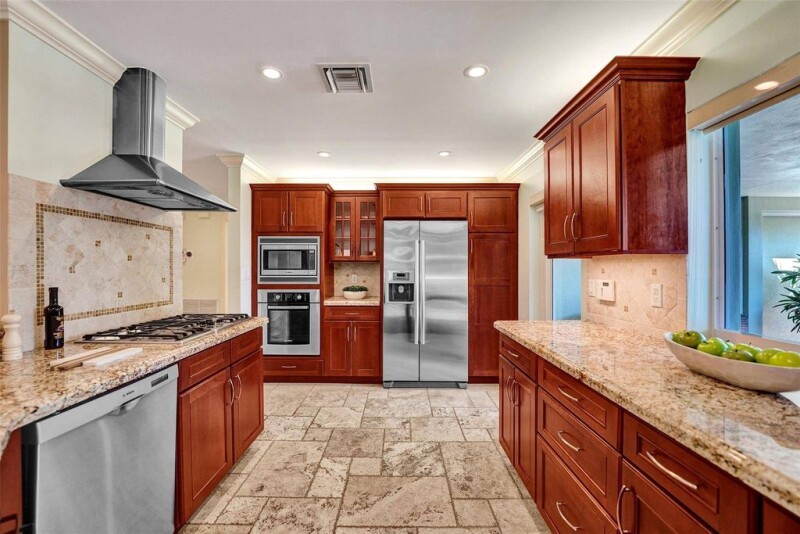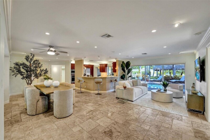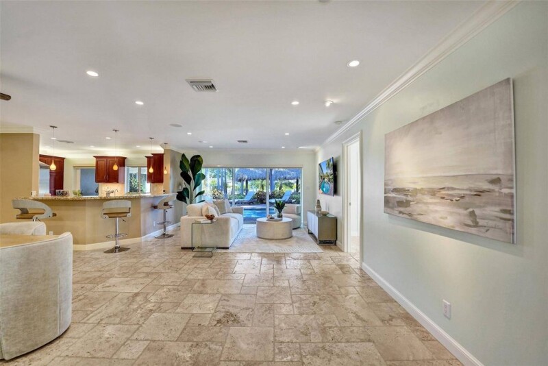 This stunning 2-bed 2-bath w/ office, fully rebuilt in 2008, home on a cul-de-sac offers 80 ft of water frontage & 60 ft of dock, no fixed bridges, & direct access to Intracoastal & ocean—just six houses in from the Intracoastal & minutes to the Hillsboro Inlet! Nestled on a spacious 9,600 sq ft lot, this home features a heated pool, an outdoor shower, & a tiki hut—perfect for entertaining. Enjoy the added benefits of solar panels & peace of mind w/hurricane impact windows & doors. The property includes a 2-car garage, w/plenty of storage & parking. Boating enthusiasts will appreciate the updated seawall/dock, & income producing dock. Inside, a split floor plan provides privacy, & the kitchen boasts Bosch appliances w/ a gas range, ideal for cooking. Natural Travertine Floors thru out.