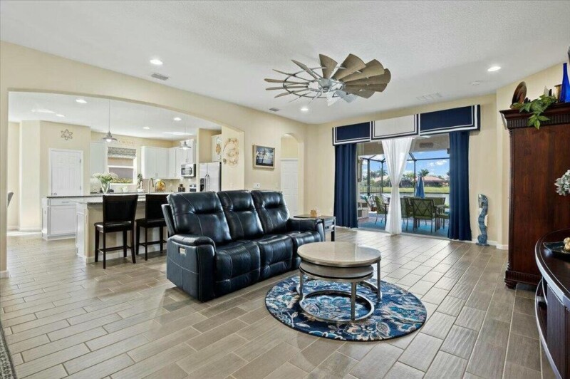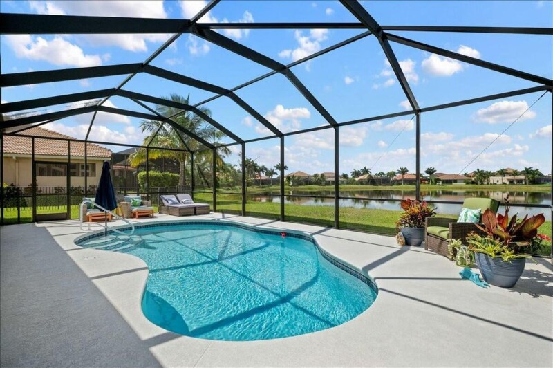 OPEN HOUSE APRIL 6th, 1pm-3pm. Welcome to Your Dream Home! Step into this stunning 3 bedroom, 3 Full-bath, 3-car garage, POOL HOME in the prestigious, gated community of The Estates at Tradition. Built in 2017, this lake-view gem effortlessly combines luxury, style, and functionality, creating a haven for serene and sophisticated living. You'll Fall in Love With: Chef's Kitchen, Oversized white cabinetry with pull-outs, Granite countertops & two islands, Stainless steel appliances, Eat-in kitchen and formal dining area, Custom lighting and elegant window treatments.Bright & Open Layout featuringWood-like ceramic tile floors in main areas, Brand-new cozy carpet in bedrooms, Soaring natural light throughout, Spa-like master bath with his-and-hers walk-in closets, shaker vanities,.